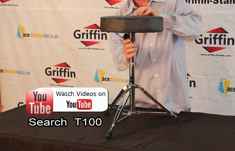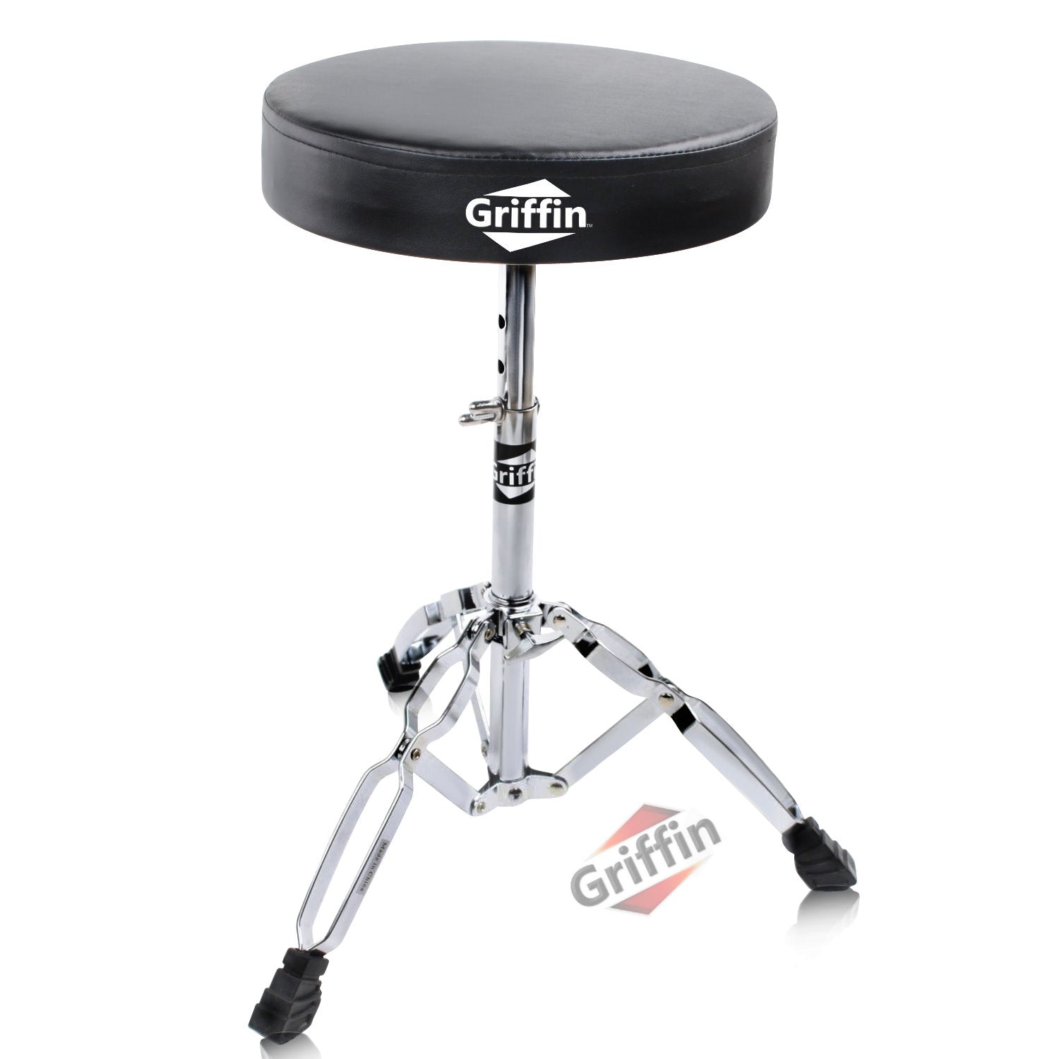 Drum Throne Stand by GRIFFIN - Padded Drummers Seat - Drum Set Percussion Chair for Adults - Musicians Guitar Stool Double Braced Hardware by GeekStands.com