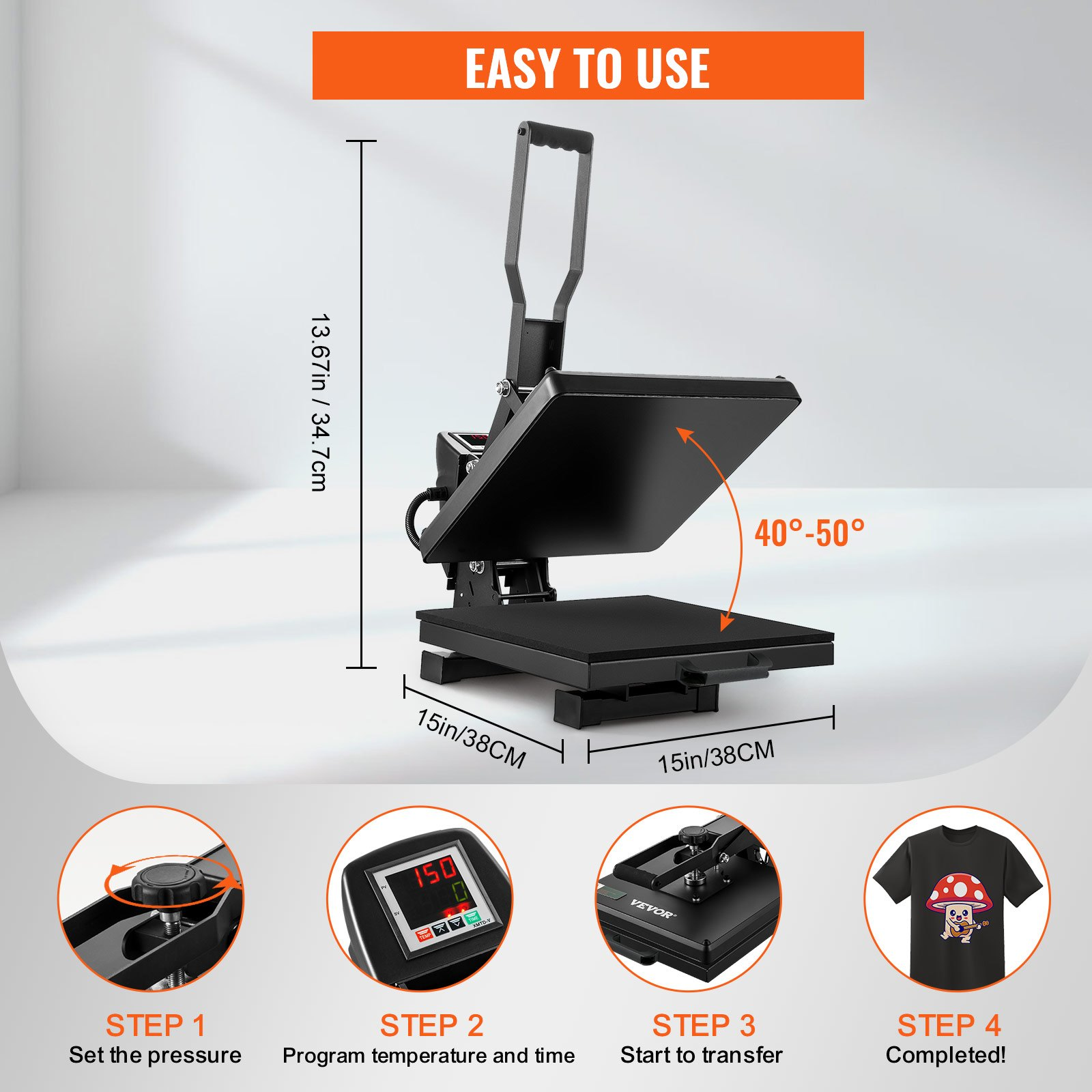 VEVOR Heat Press 15 x 15 - Heat Press Machine for T-shirts, Fast Heating, High Pressure for Digital Industrial-Quality Sublimation Printer for Heat Transfer Vinyl, 15" x 15", Black
