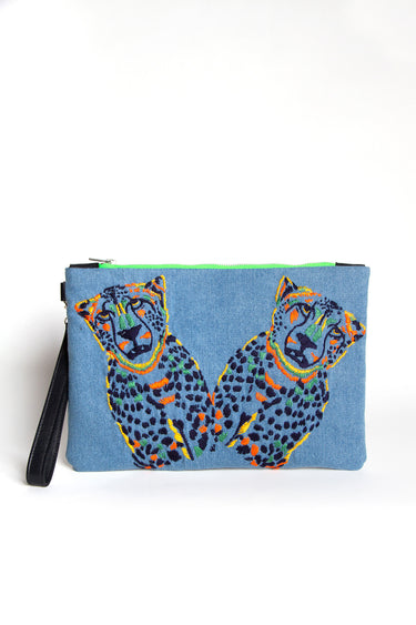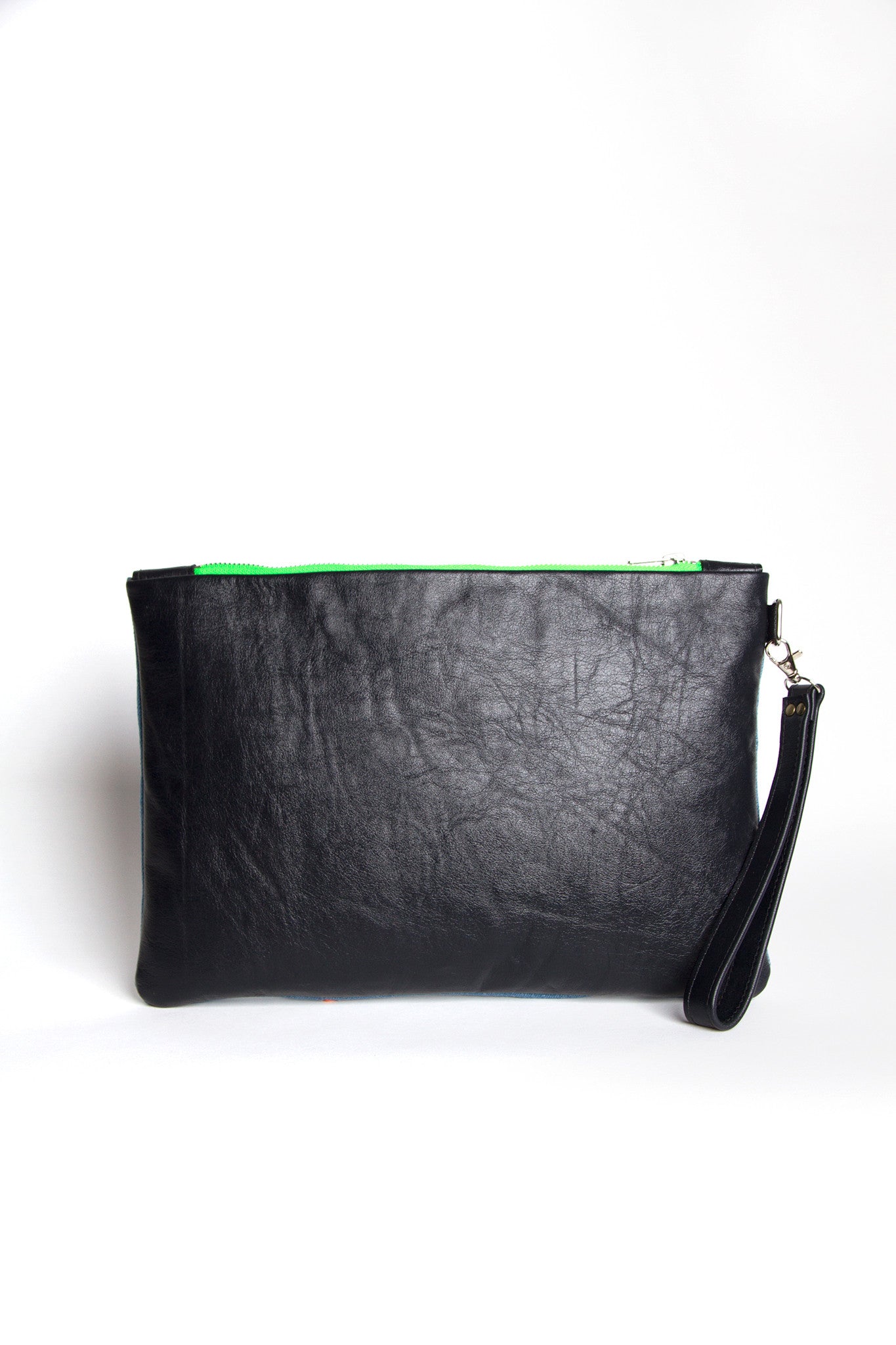 One of a kind, hand embroidered clutch bag made from 100% upcycled materials