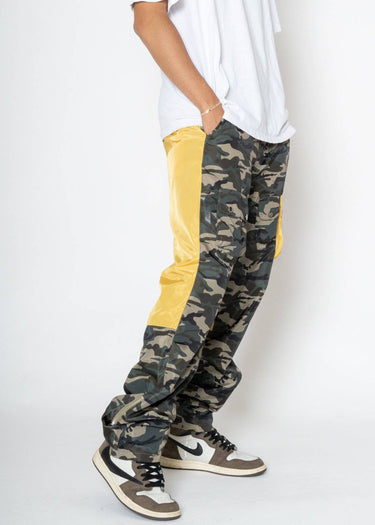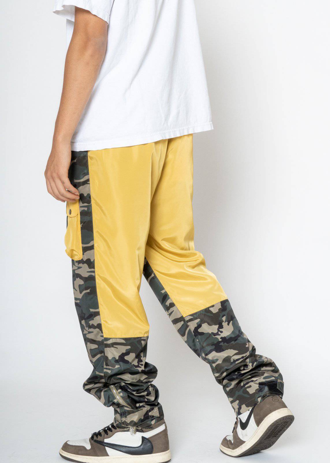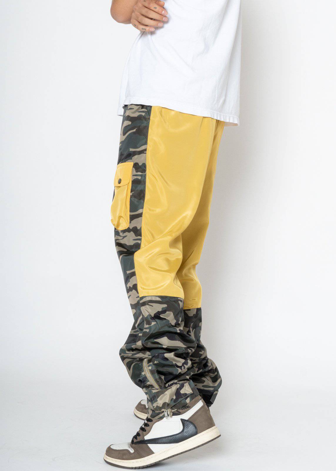Softly swaying pants in perfect camo and yellow color blocking boast multiple bellow cargo pockets, a functional zipper on the out-seam, and Velcro tabs for convenience!