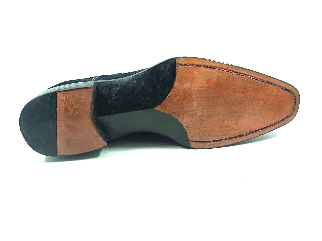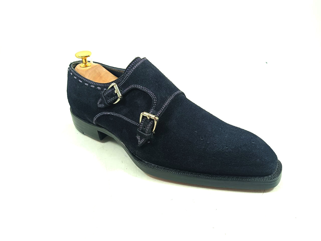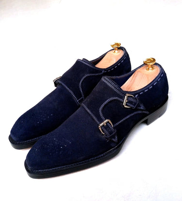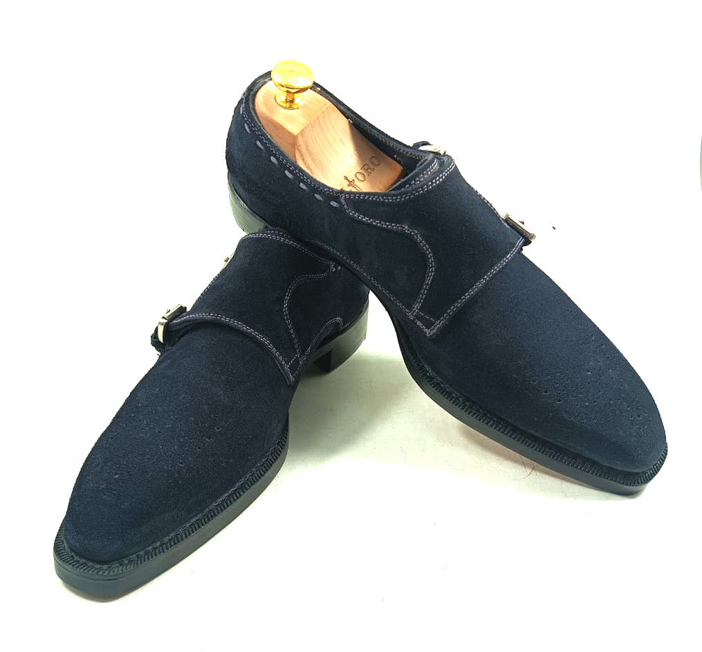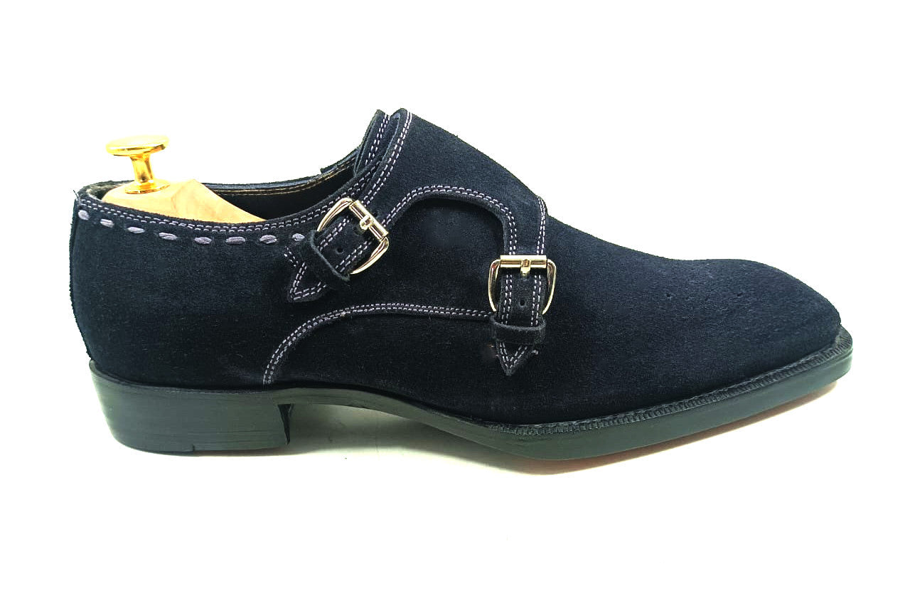 The rich navy blue color of the suede leather gives these monk shoes a classic look featuring fiddle back waist with good year welted hand stitched leather soles. The meticulous craftsmanship that goes into making each pair ensures that they are built to last, providing you with a reliable and comfortable pair of men dress monk shoes that will stand the test of time.
