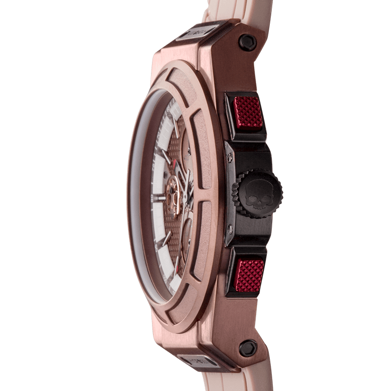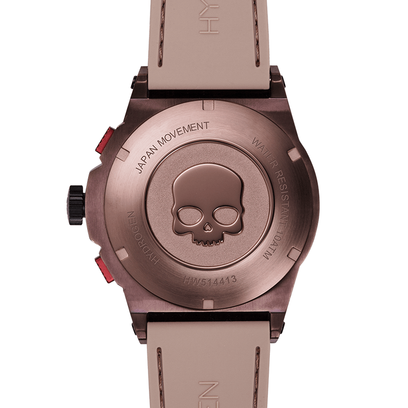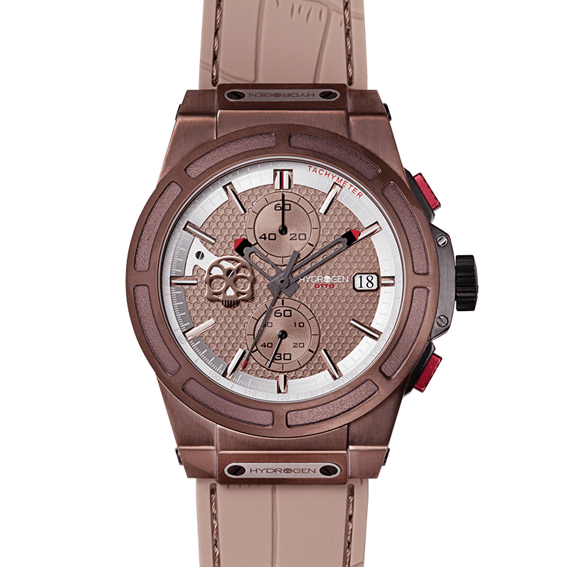 This style represents a fashion inspired “sportswear luxury” piece in a color combination of tonal brown. Featuring a 44mm solid stainless steel case plated in iconic brown and a metallic brown honeycomb dial. A Made in Japan movement quartz with complications of Chronograph and Date function power this wristwatch.