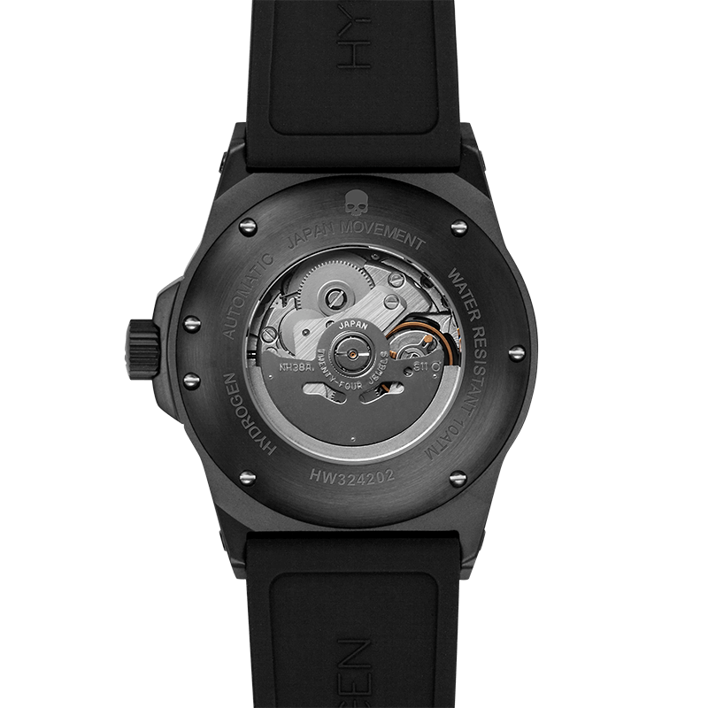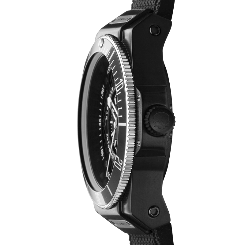 This “blacked-out” version of the Sportivo is a bold representation of authentic sport influenced wristwear. Featuring the NH38A Japanese 3-hand automatic movement this Sportivo model exhibits a black on black coloration with black dial, stainless steel black ionic plated case and black strap in high-performance silicone.