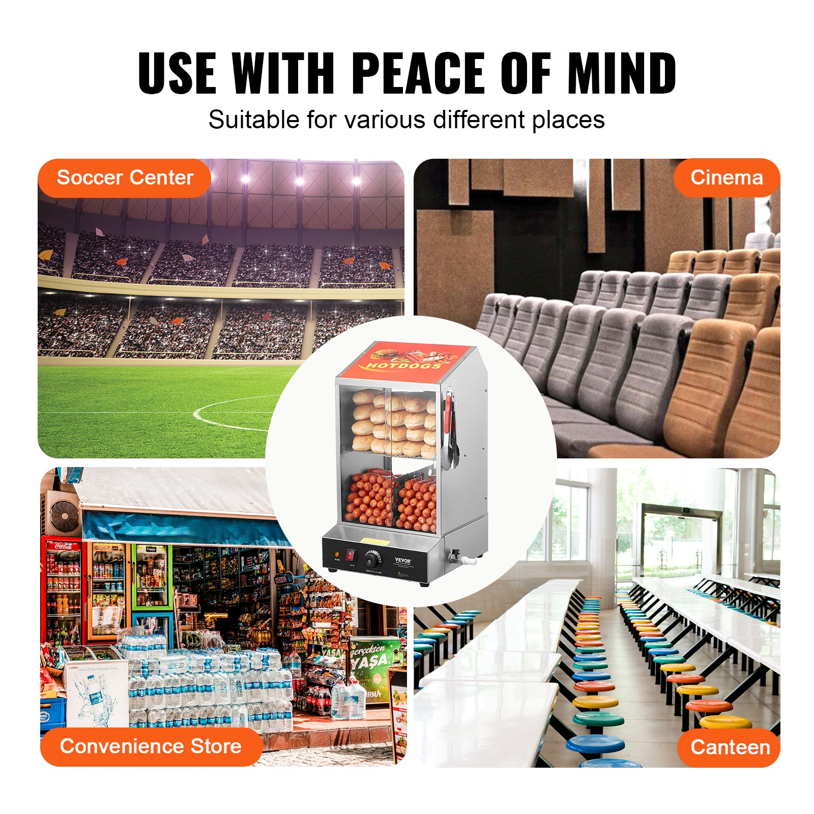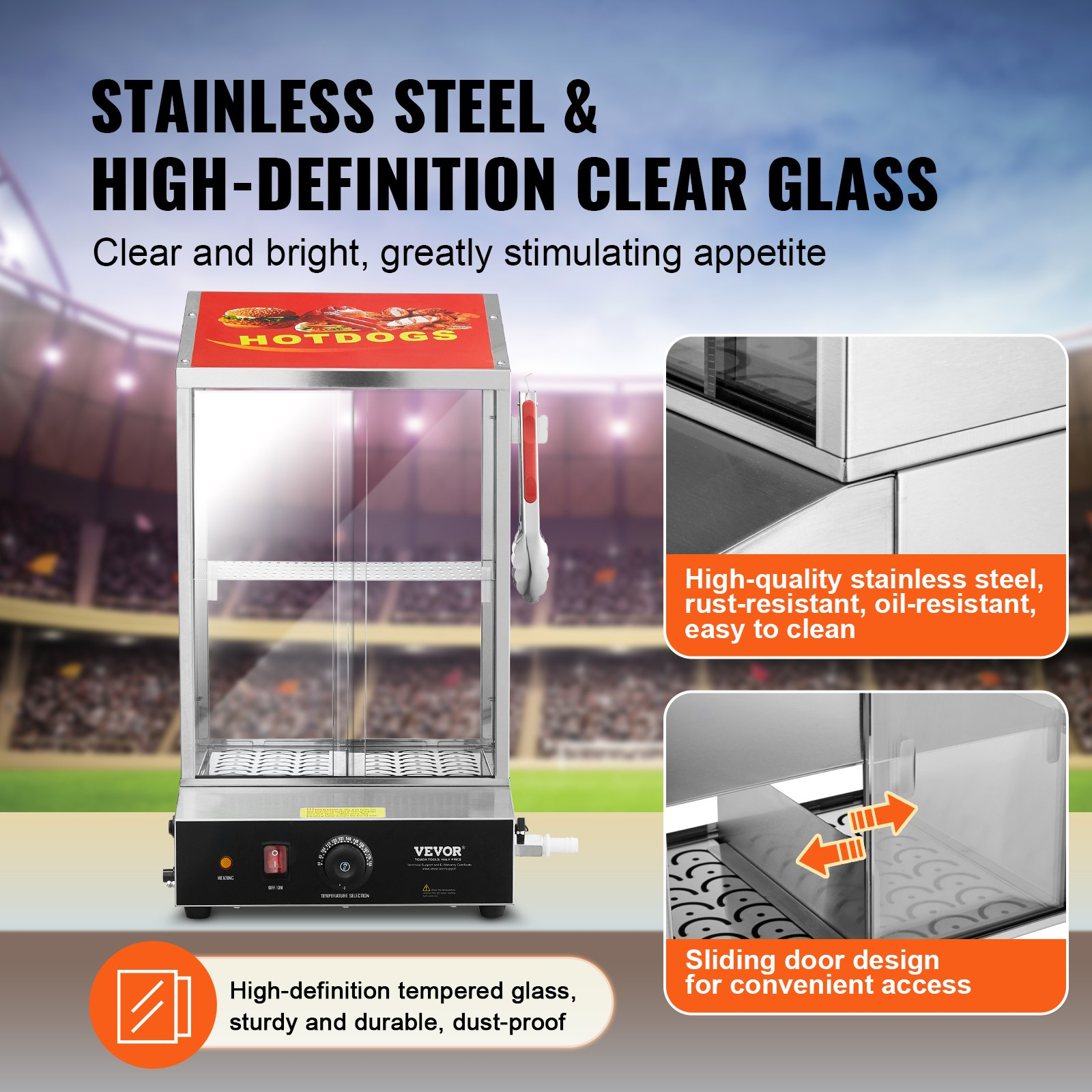 PRODUCT DESCRIPTION VEVOR Commercial Hot Dog Steamer 2-Tier Electric Bun Warmer 39QT Slide Doors