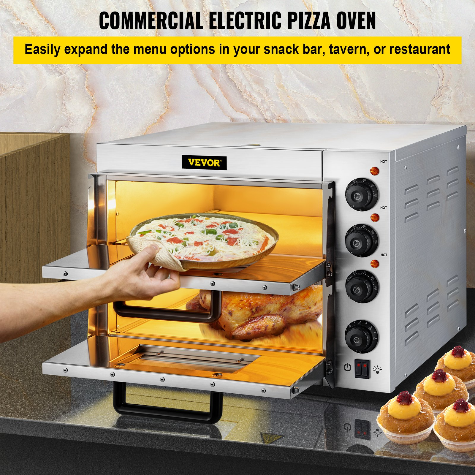 PRODUCT DESCRIPTION VEVOR Commercial Pizza Oven Countertop, 14" Double Deck Layer, 110V 1950W Stainless Steel Electric Pizza Oven with Stone and Shelf, Multipurpose Indoor Pizza Maker for Restaurant Home Pretzels Baked