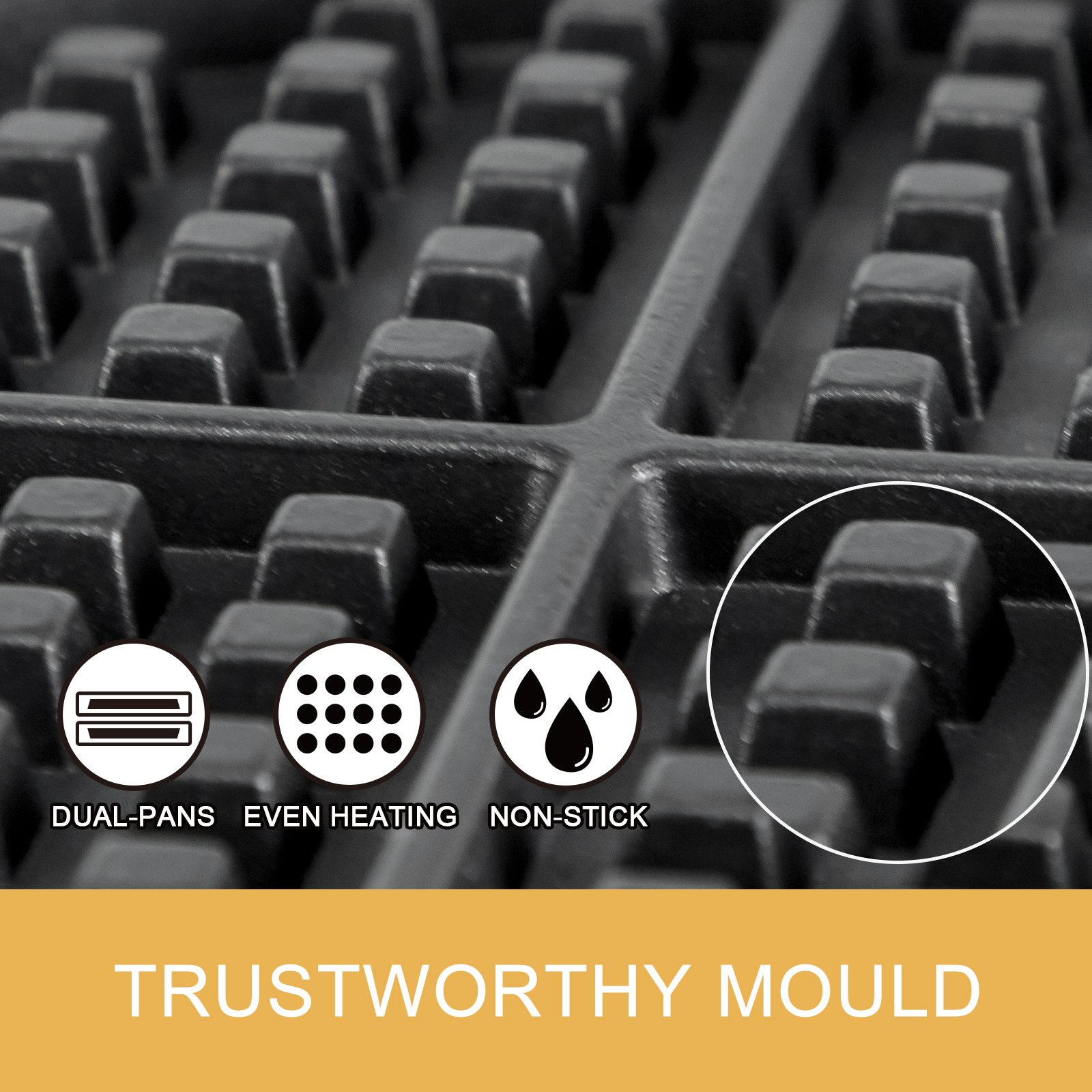 Mould Material: Cast Aluminum,Body Material: Stainless Steel,Gross Weight: 16.8 lbs (7.6 kg),Timer: 0~5 mins,Mould Coating: Teflon,Temp.: 50~300?,Package Dimensions (L x W x H): 16.5" x 15" x 13" (42 x 38 x 33 cm),Power: 1100W