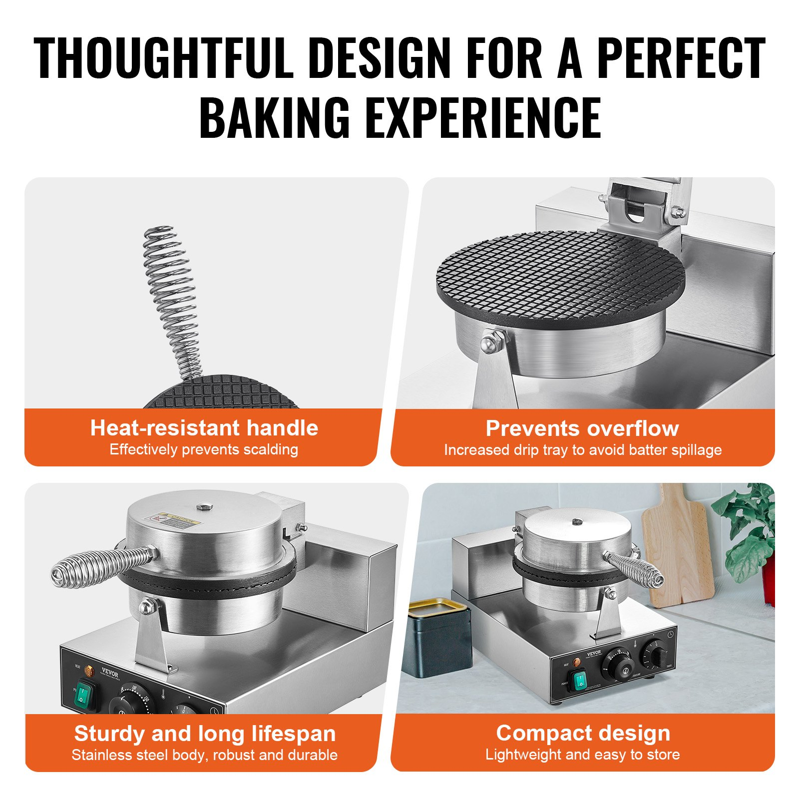 PRODUCT DESCRIPTION VEVOR Electric Ice Cream Cone Maker Commercial Waffle Cone Egg Roll 1230W