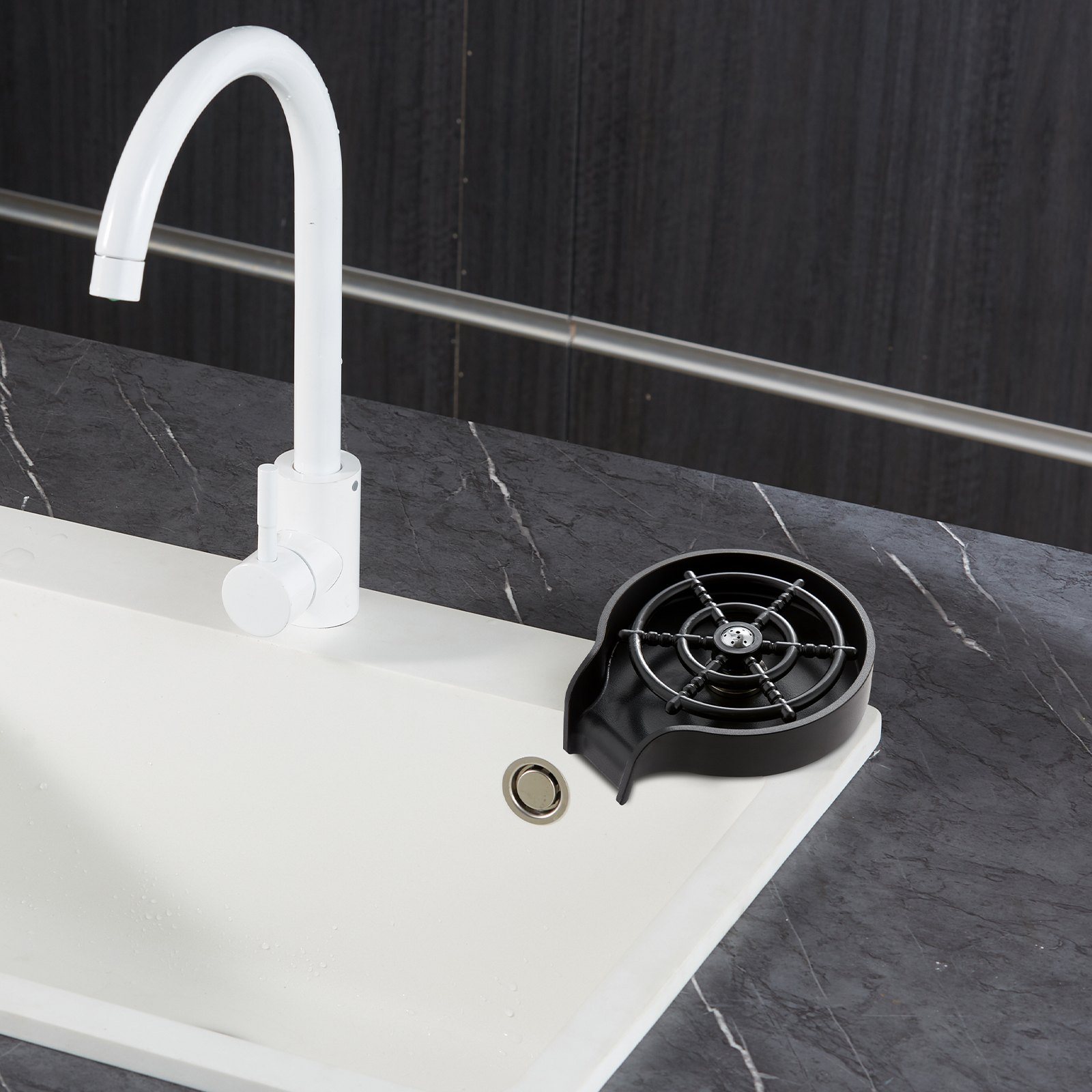 PRODUCT DESCRIPTION VEVOR Glass Rinser, 10 Powerful Spraying Jets 360° Rotating Cup Rinser for Sink, Wearproof ABS Kitchen Sink Faucet Cup Washer & ABS Cup Holder for Baby Bottle, Glass Cup, Wine Glass (Black Base)