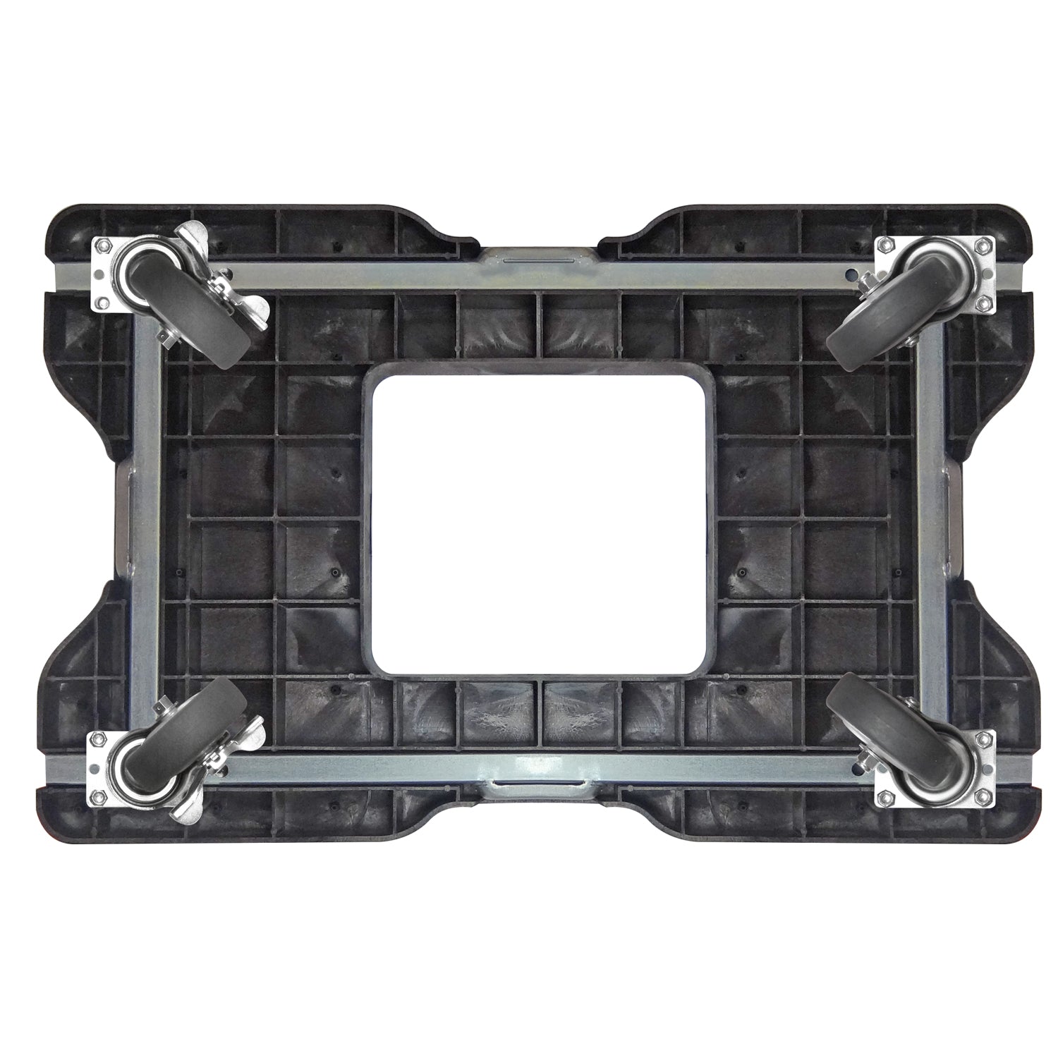 MADE IN USA BUILT TO LAST: USA heavy-duty industrial polyethylene (HDPE) impervious to contaminants/weather. Flat top textured grip pad deck evenly secures cargo. 4-sided steel frame zinc plated.