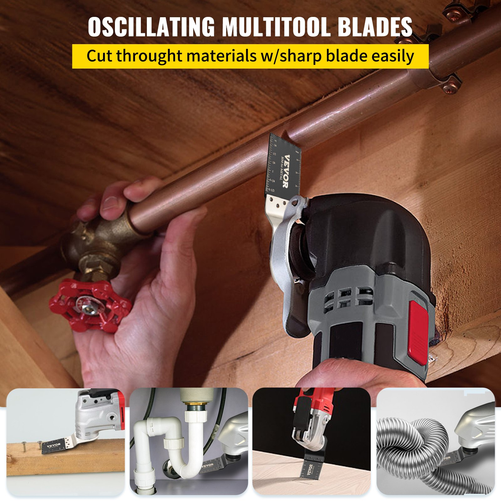 PRODUCT DESCRIPTION VEVOR 100PCS Oscillating Saw Blades, Quick Release Multitool Blades Kit, HCS Tool Blades for Wood Plastic Metal Nails Bolts, Compatible with Dewalt Dremel Fein Worx Bosch Makita Milwaukee