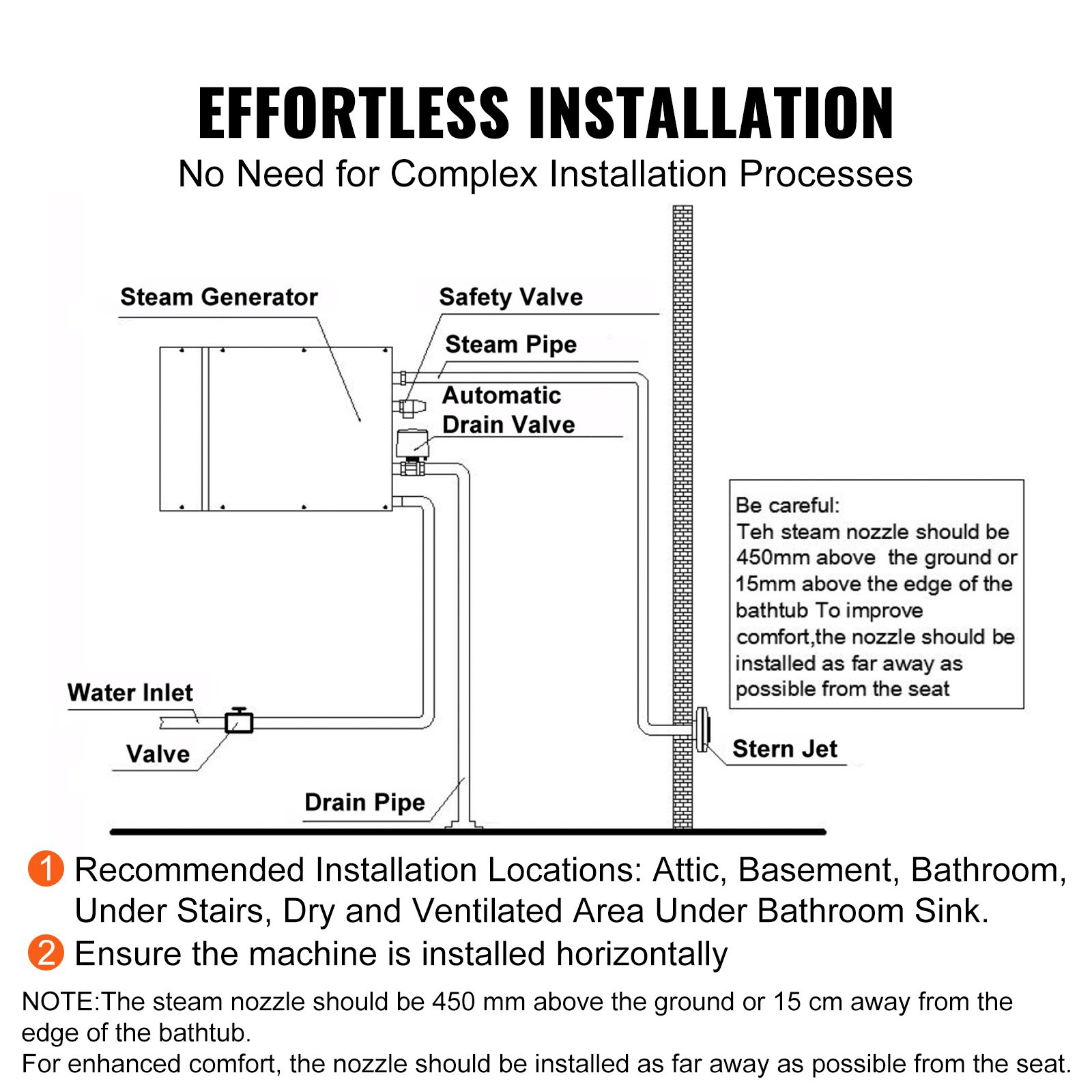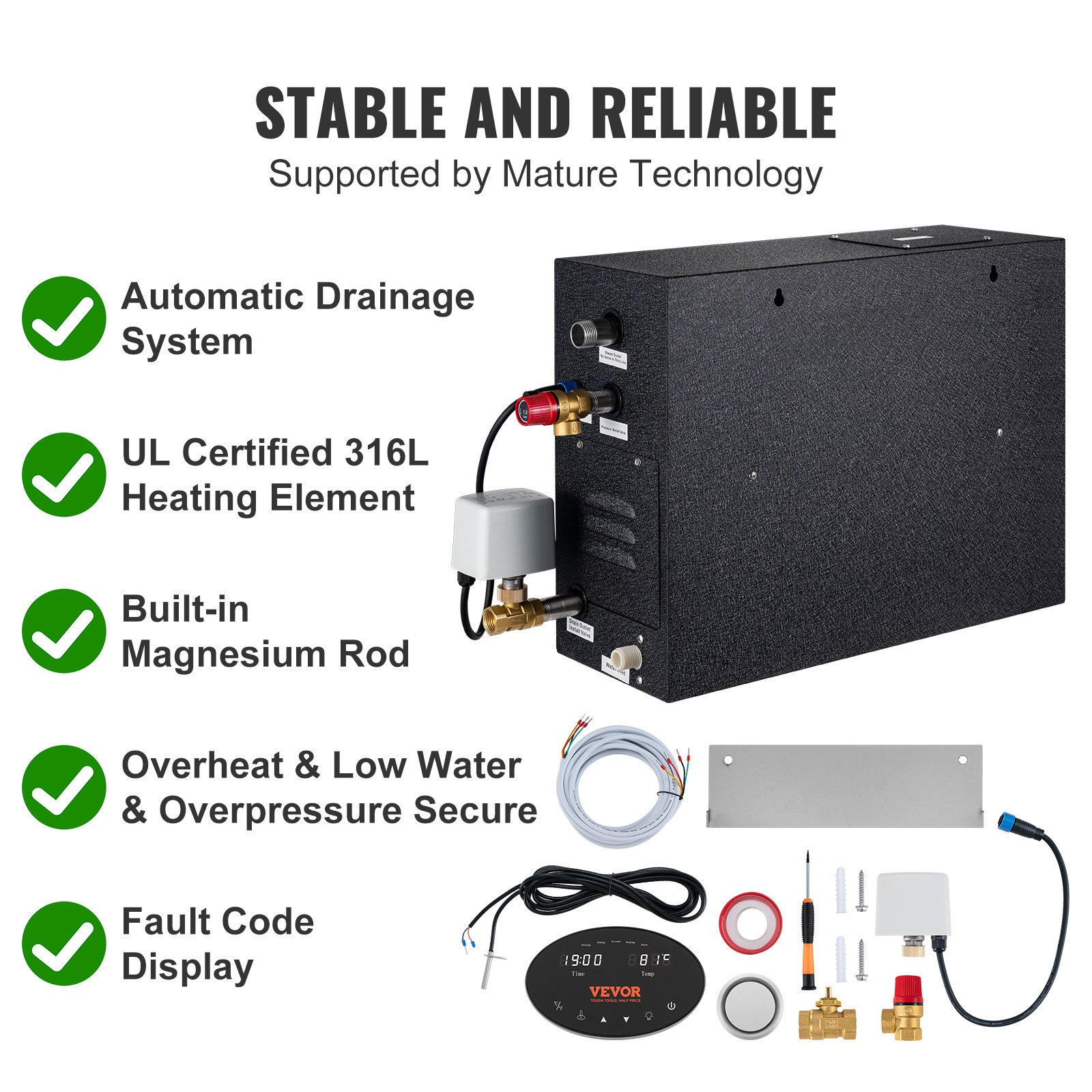 PRODUCT DESCRIPTION VEVOR 12KW Steam Shower Generator, Segmented Heating & Temperature Customization & 24h Timer Steam Kit, Automatic Drainage Home Steam Shower System
