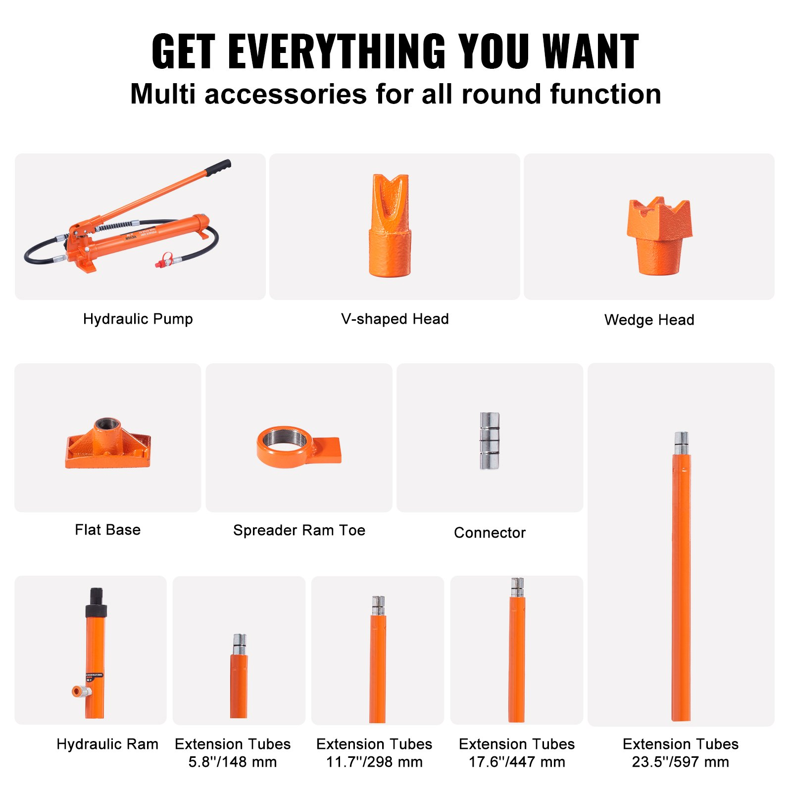 PRODUCT DESCRIPTION VEVOR 20 Ton Porta Power Kit, Portable Hydraulic Jack with 4.6 ft/1.4 m Oil Hose, Car Frame Repair Tool with Storage Case for Automotive, Heavy Equipment, Mechanic (44000 LBS)