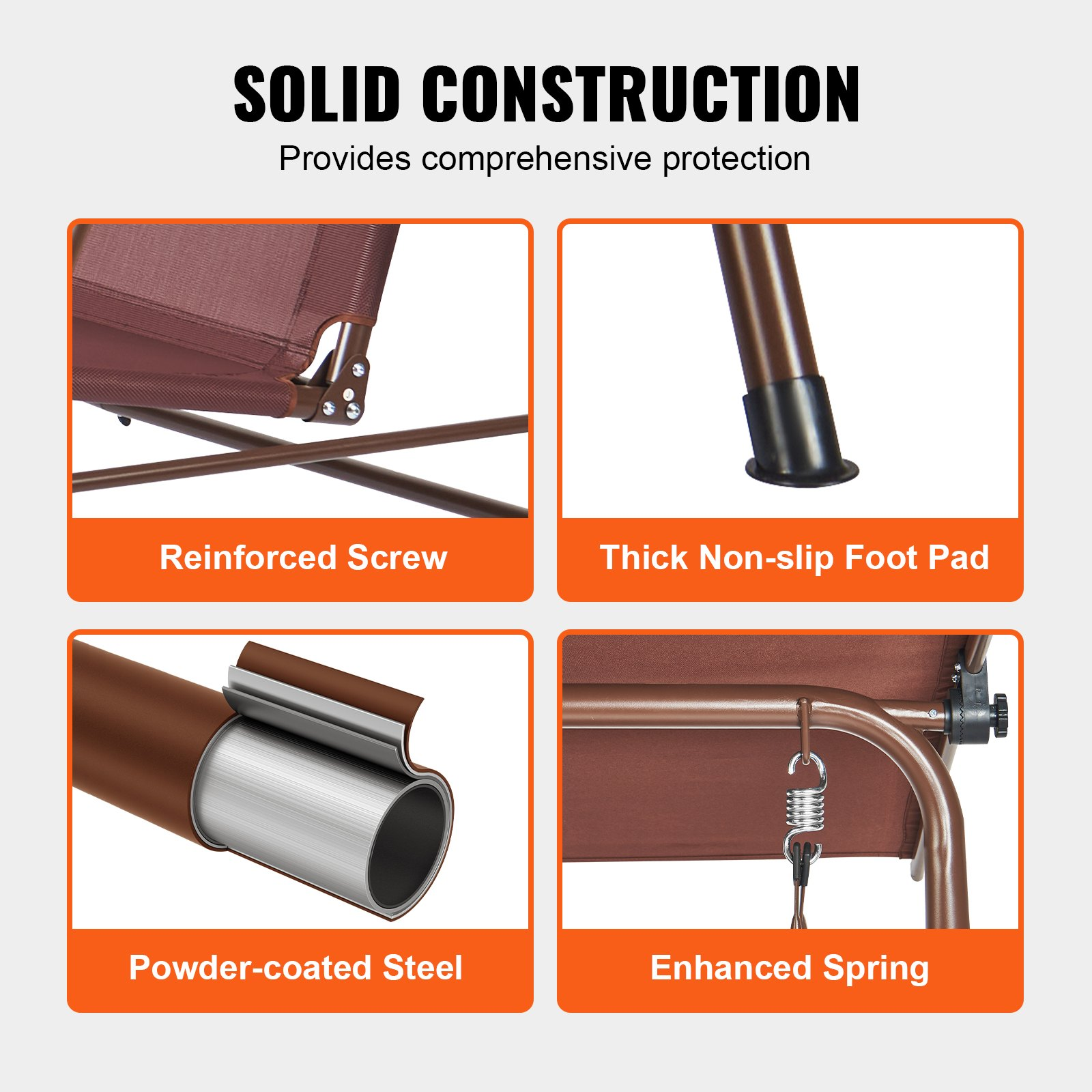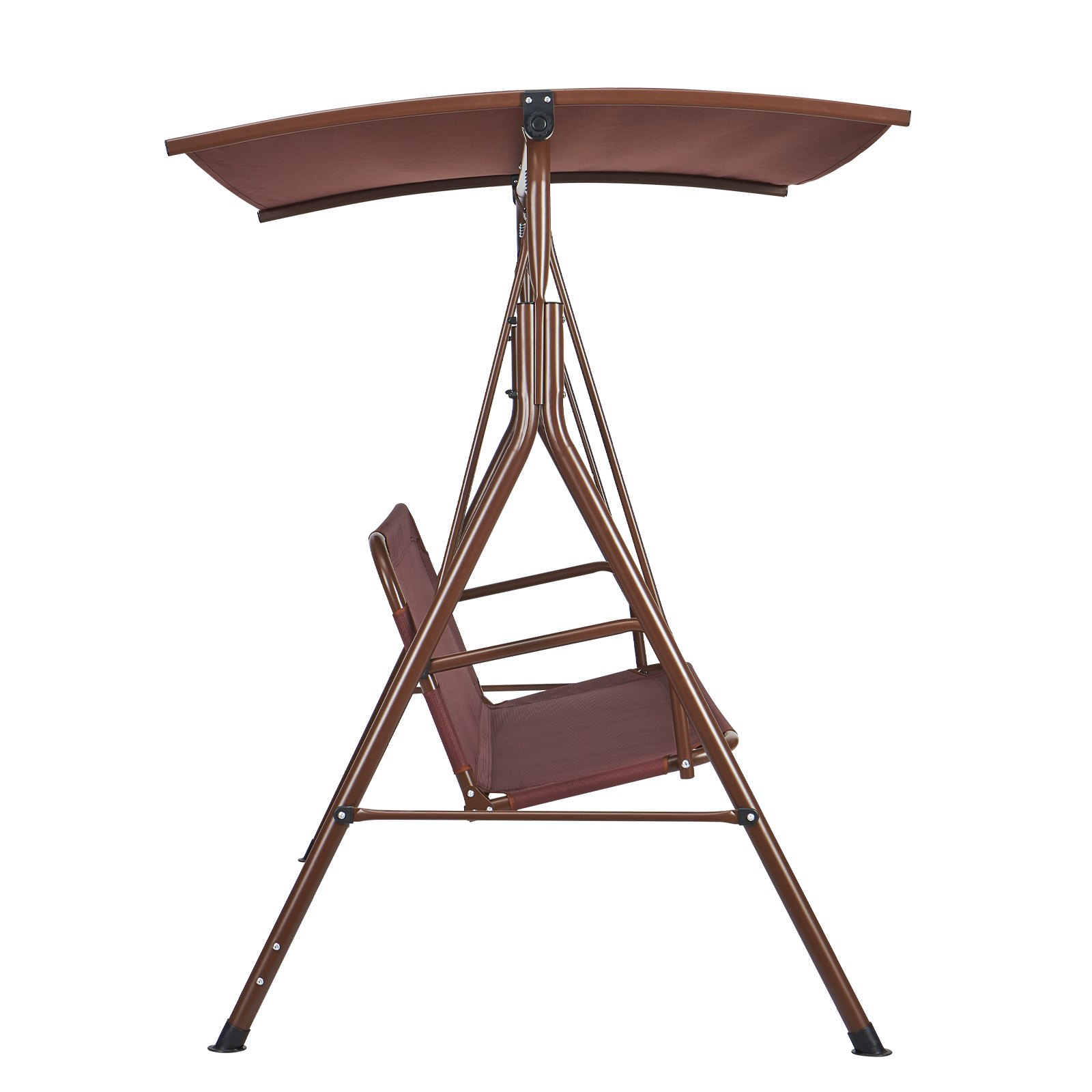 PRODUCT DESCRIPTION VEVOR 3-Person Patio Swing Chair, Outdoor Patio Swing with Adjustable Canopy, Porch Swing with Armrests, Teslin Fabric and Alloy Steel Frame, for Balcony, Backyard, Patio, Garden, Poolside, Brown