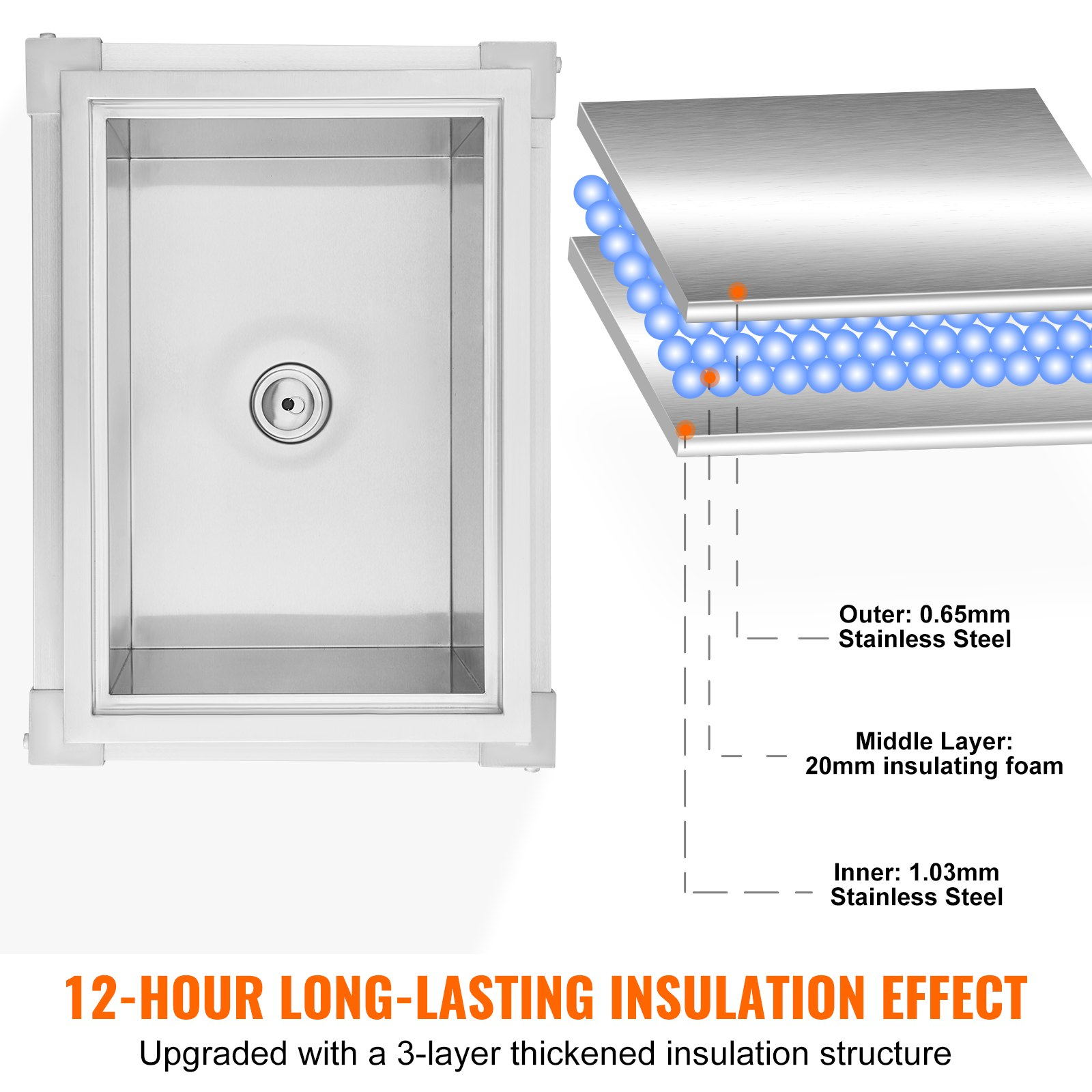 Capacity: 31.7 QT / 30 L,Item Model Number: ICB-FR201412,Net Weight: 19.6 kg / 43.2 lbs,Main Material: Stainless Steel,Product Size: 22.08x16.02x39.17 inch/ 560x407x995 mm