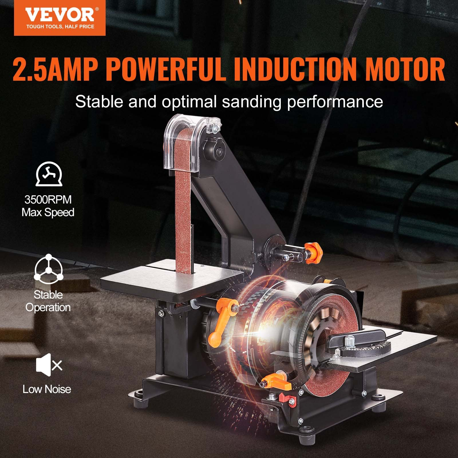 PRODUCT DESCRIPTION VEVOR 5" Disc Sander and 1" x 30" Belt Sander Combo with 2.5A Induction Motor, Powerful Woodworking Bench Sander with 0-45° Adjustable Cast Aluminum Work Table