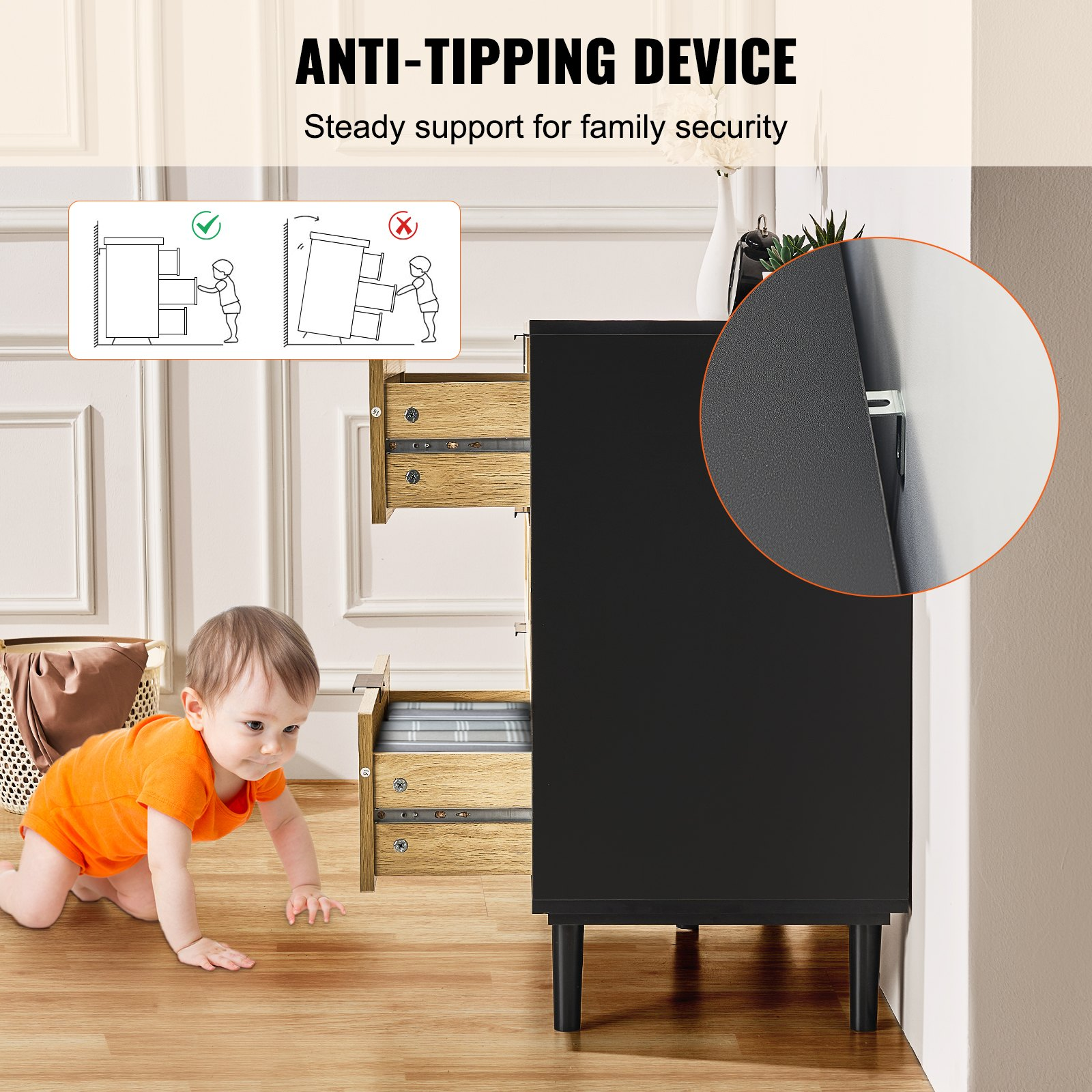 VEVOR 6 Drawer Rattan Dresser, Boho Dresser, Rattan Chest of Drawers with Spacious Storage, Natural Rattan Dresser for Bedroom, Living Room & Hallway,Rattan Nightstand with Sturdy Handles&Legs, Black