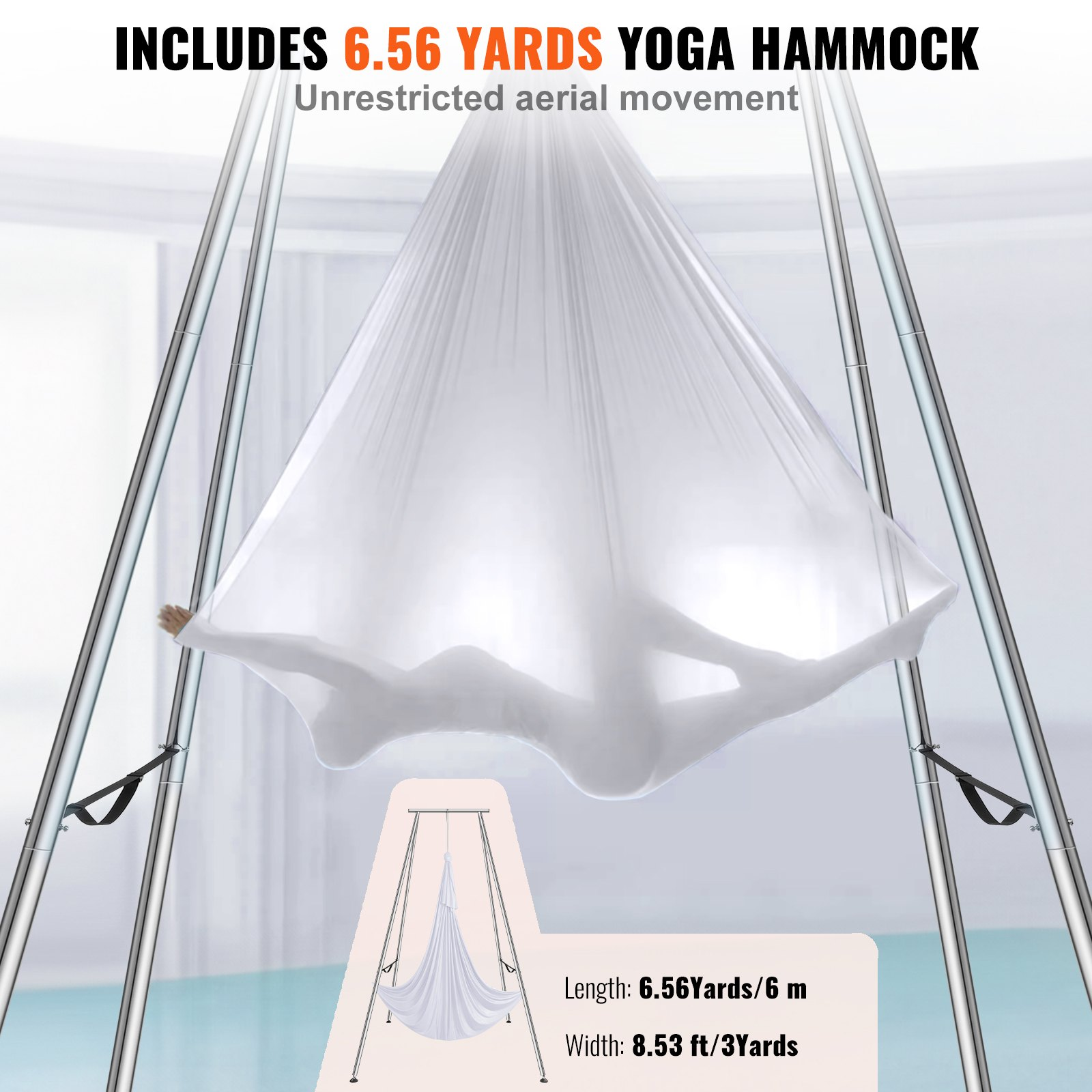 (FINAL PRICES ARE LOWER ON OUR SITE!) VEVOR Aerial Yoga Frame & Yoga Hammock, 9.67 ft Height Professional Yoga Swing Stand Comes with 6.6 Yards Aerial Hammock, Max 551.15 lbs Load Capacity Yoga Rig for Indoor Outdoor Aerial Yoga, White