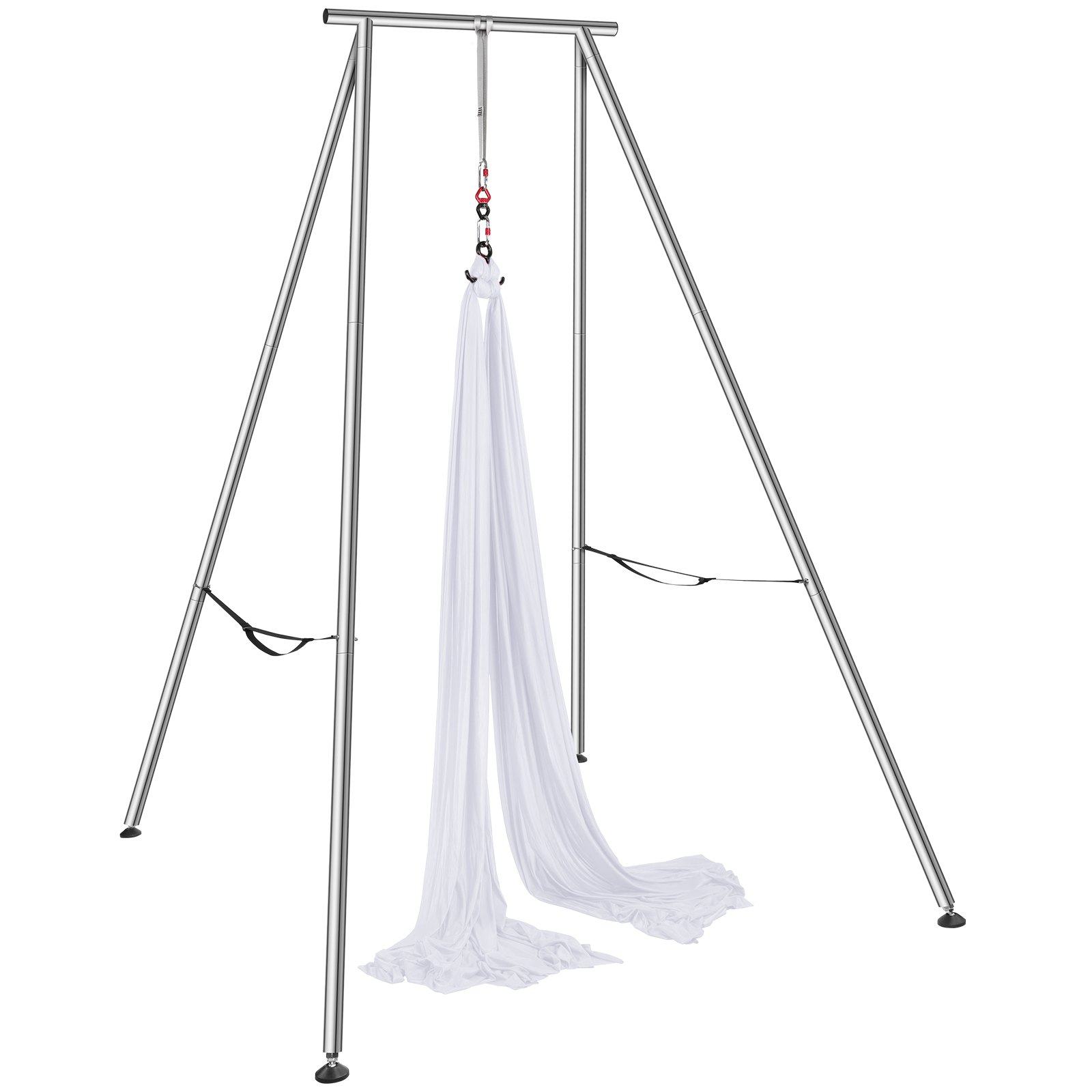 VEVOR Aerial Yoga Frame & Yoga Hammock, 9.67 ft Height Professional Yoga Swing Stand Comes with 6.6 Yards Aerial Hammock, Max 551.15 lbs Load Capacity Yoga Rig for Indoor Outdoor Aerial Yoga, White