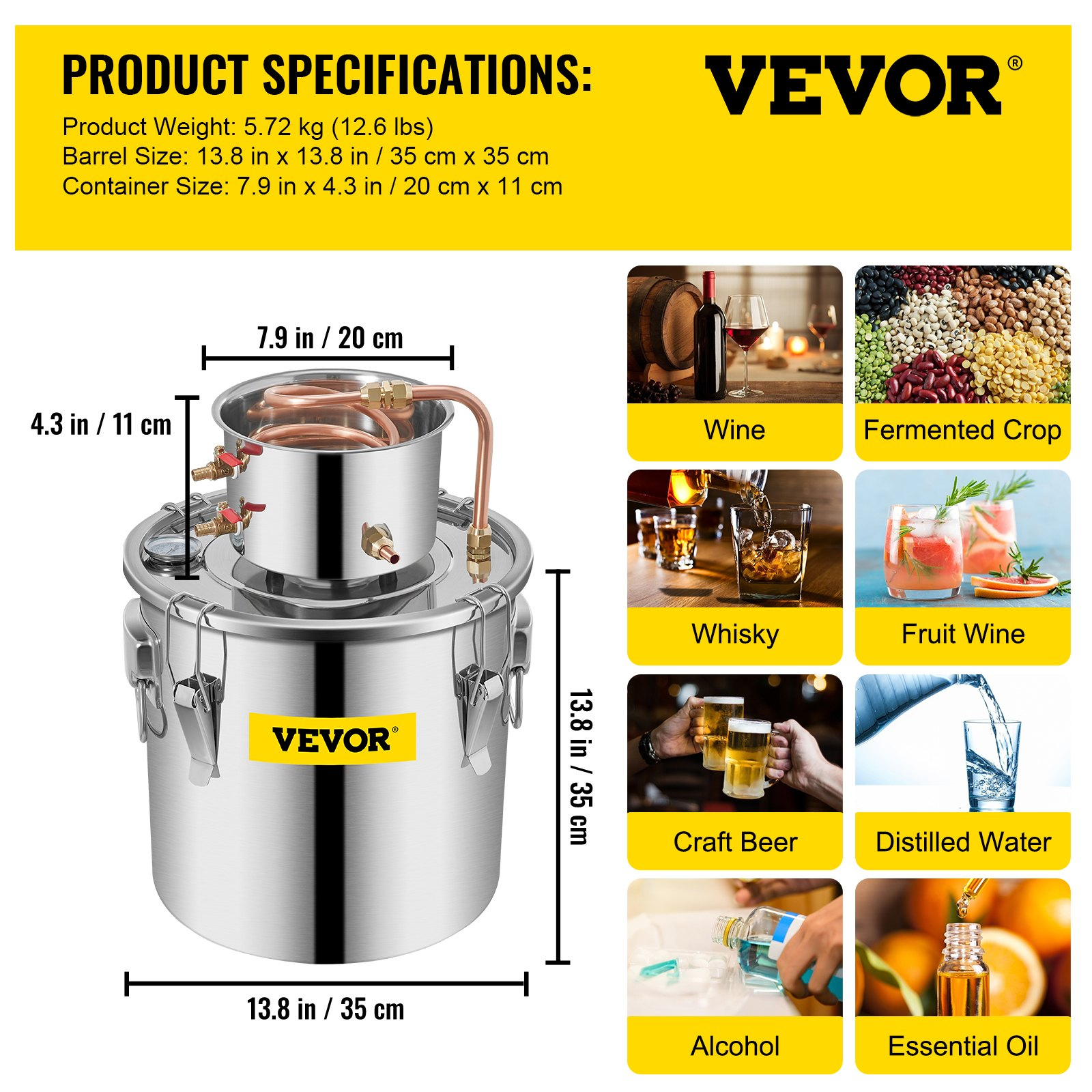 PRODUCT DESCRIPTION VEVOR Alcohol Still 8Gal 30L Stainless Steel Water Alcohol Distiller Copper Tube Home Brewing Kit Build-in Thermometer for DIY Whisky Wine Brandy