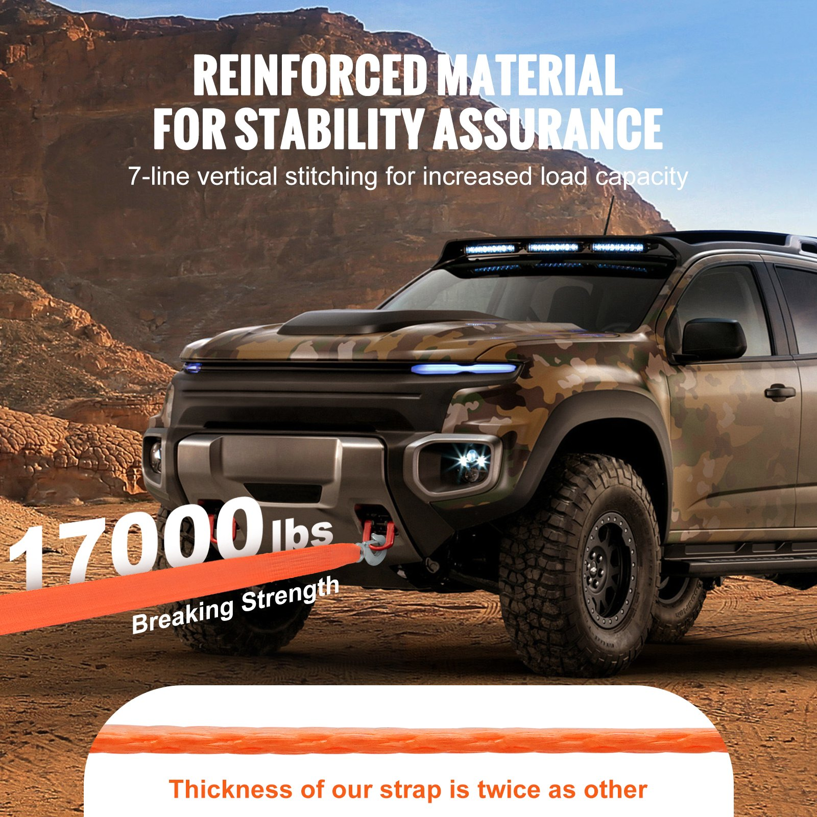 PRODUCT DESCRIPTION VEVOR ATV Car Tow Strap with Hooks 2"x20' 17000 lbs, Tow Straps with Safety Hooks, Car Heavy Duty Recovery Rope for Trucks Vehicles Towing Accessories, Tow Cable for for Roadside Recovery
