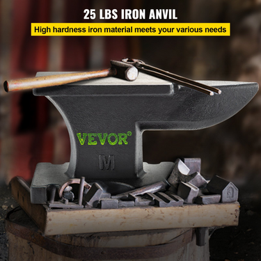 PRODUCT DESCRIPTION VEVOR Cast Iron Anvil, 25 Lbs(11kg) Single Horn Anvil with 6.8 x 3.5 inch Countertop and Stable Base, High Hardness Rugged Round Horn Anvil Blacksmith, for Bending, Shaping