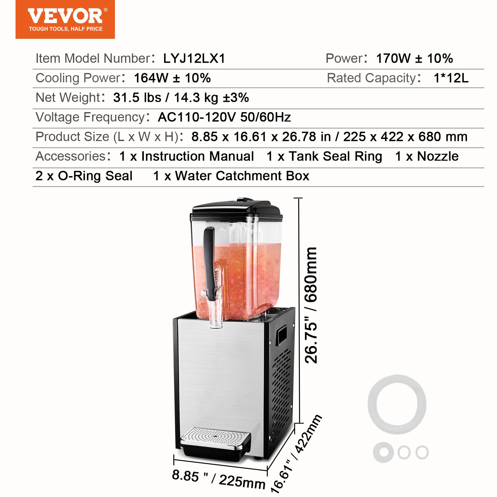 PRODUCT DESCRIPTION VEVOR Commercial Beverage Dispenser 12L Cold Juice Ice Drink Dispenser for Party