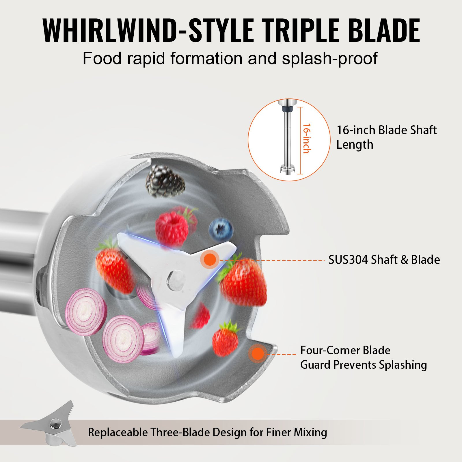 PRODUCT DESCRIPTION VEVOR Commercial Immersion Blender 500W Heavy Duty Hand Mixer for Soup Sauces