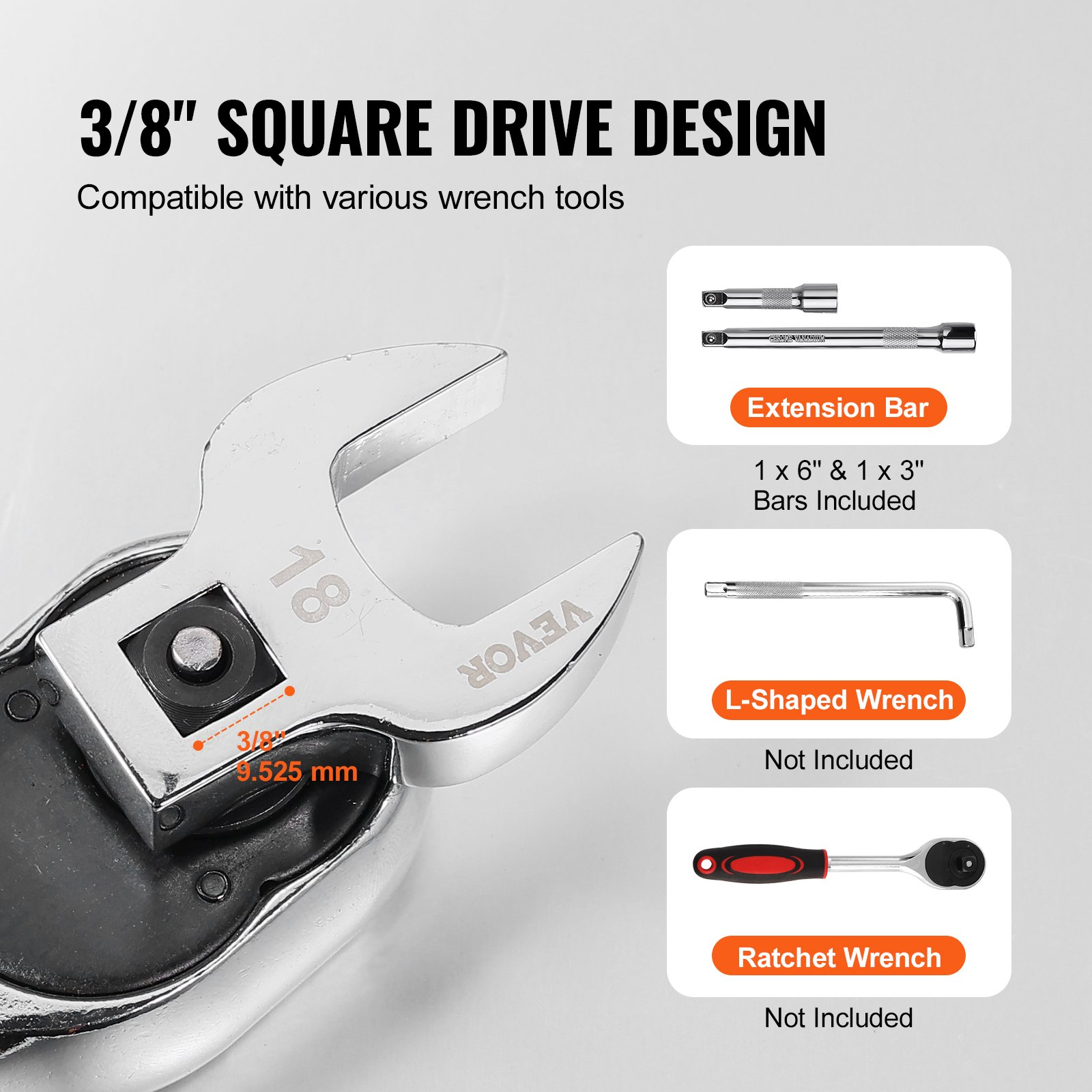VEVOR Crowfoot Wrench Set, 3/8" Drive 20-Piece Crows Foot Wrench Set with 2 Extension Bars and EVA Tool Organizer,40CR Material with Mirror Chrome Finish, SAE 3/8"-7/8" and Metric 10-22 mm,