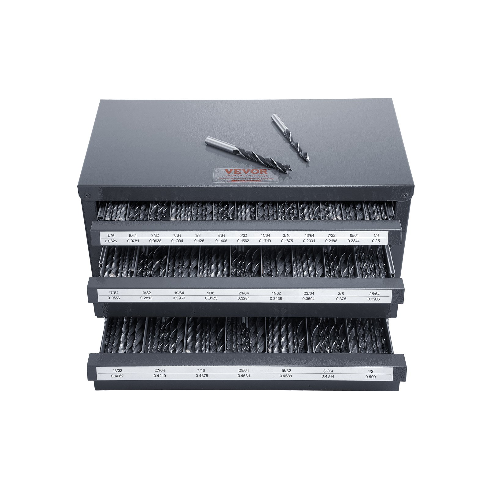 VEVOR Drill Bit Dispenser Cabinet, Three-Drawer Drill Bit Organizer Cabinet for 1/16" to 1/2", Steel Drill Dispenser Organizer Cabinet with Labels, Stackable Drill Dispenser for Drill Bit Storage