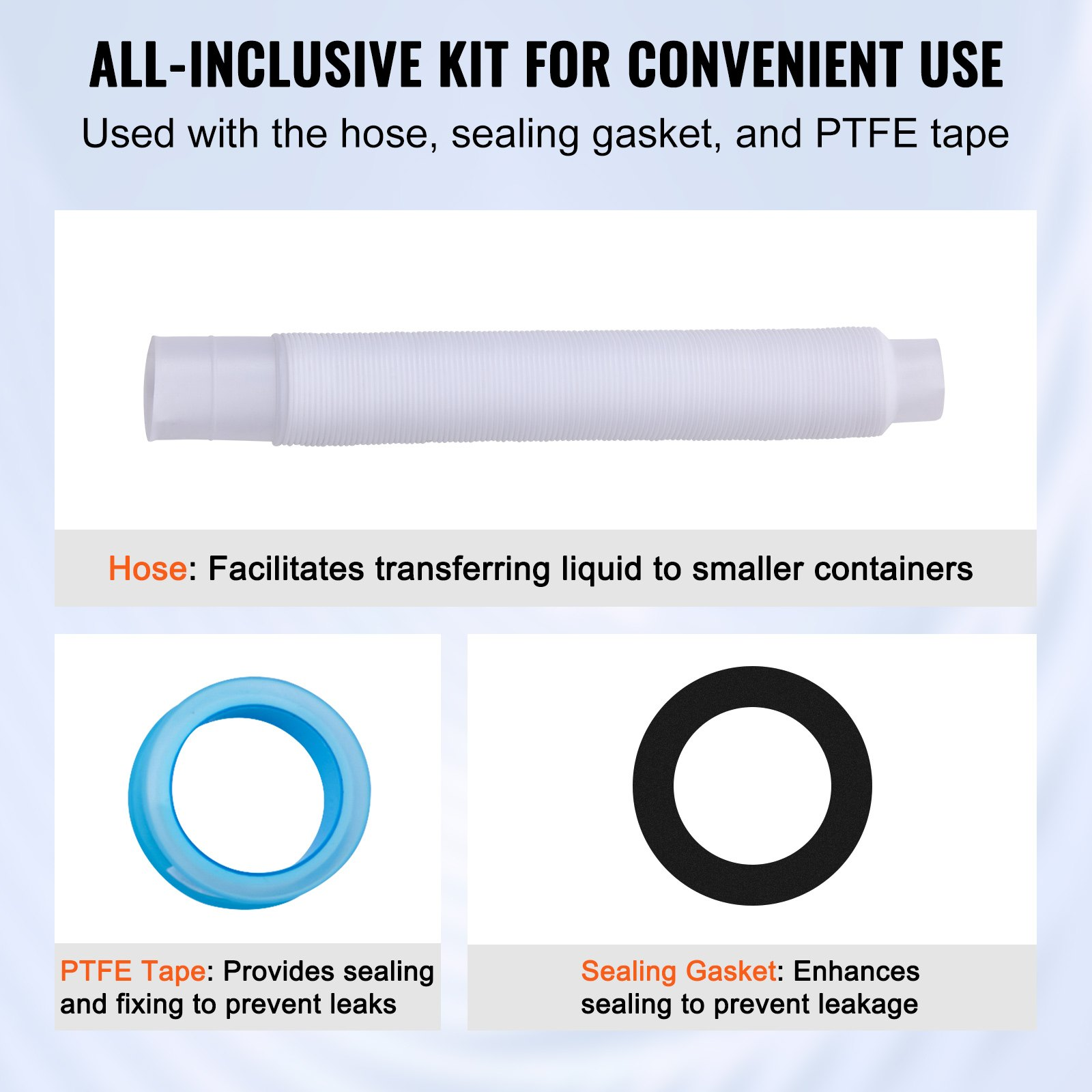 PRODUCT DESCRIPTION VEVOR Drum Pump, 10 oz. Per Stroke, Lever-Action Barrel Pump, Fits 5 to 55 Gallon Drums with 2-Piece Telescopic Suction Tube & Hose, Hand Operated, Designed to Transfer Fuel, Oil, Diesel, Carbon Steel