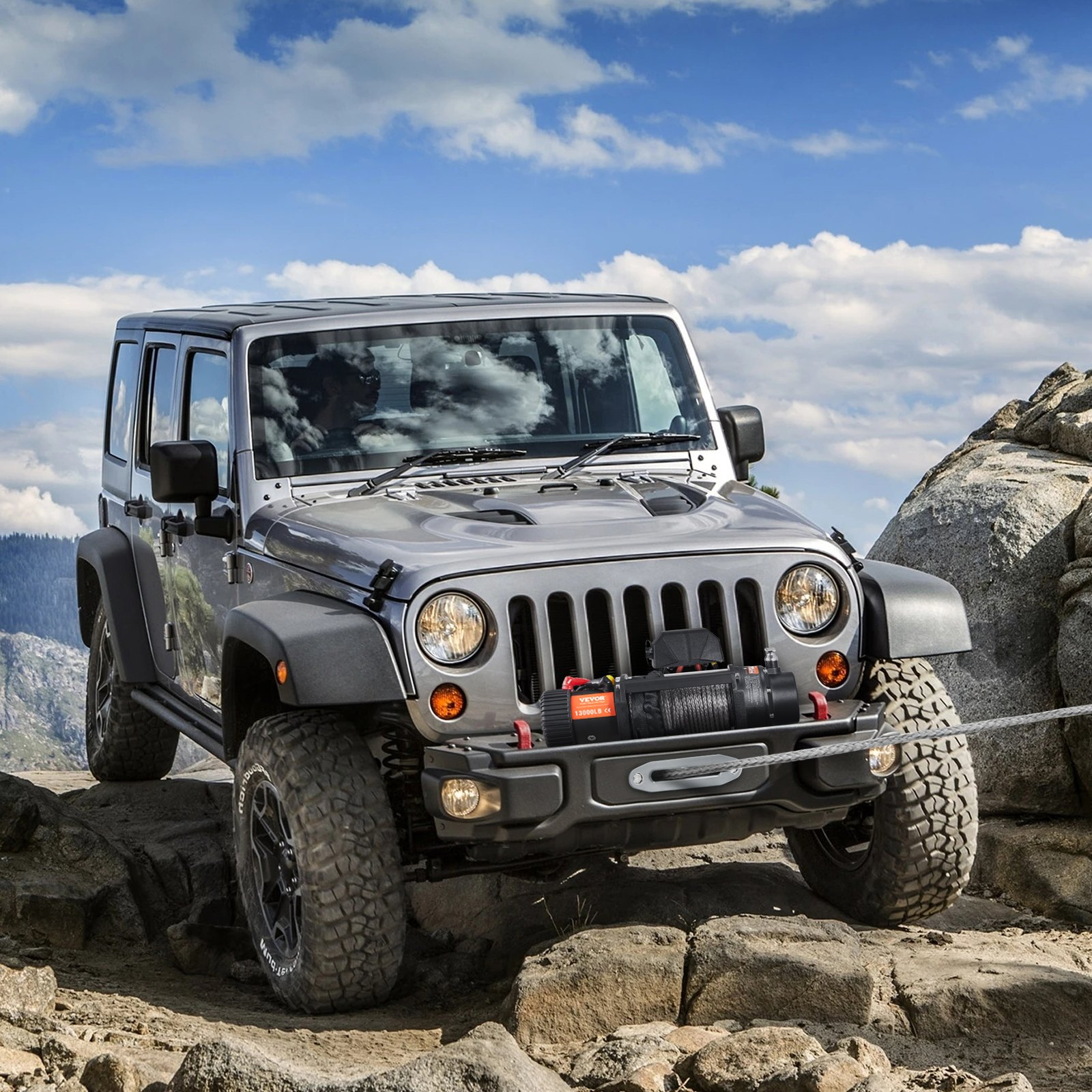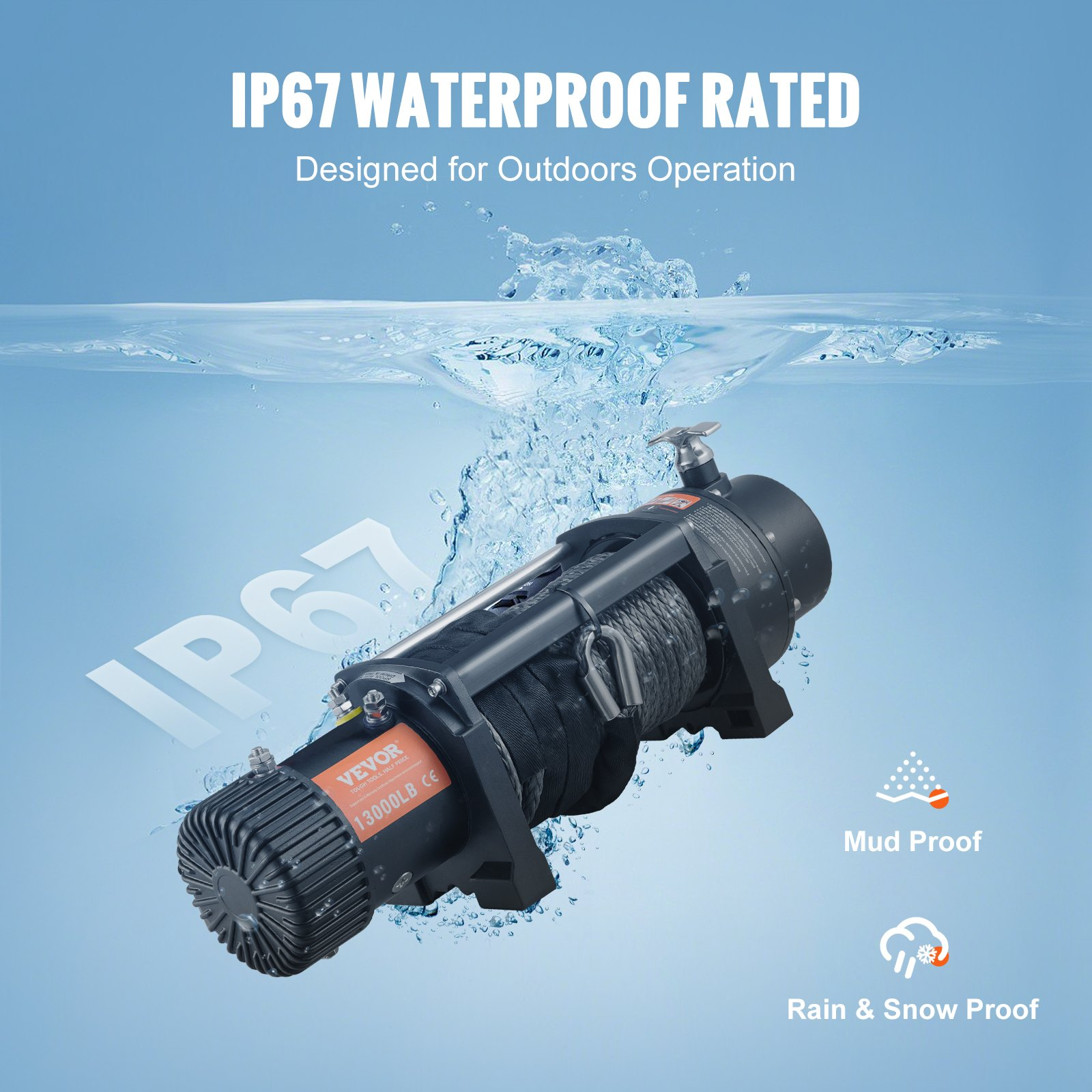 PRODUCT DESCRIPTION VEVOR Electric Winch, 12V 13,000 lb Load Capacity Nylon Rope Winch, IP67 3/8 x 85ft ATV Winch with Wireless Handheld Remote & Hawse Fairlead for Towing Jeep Off-Road SUV Truck Car Trailer Boat