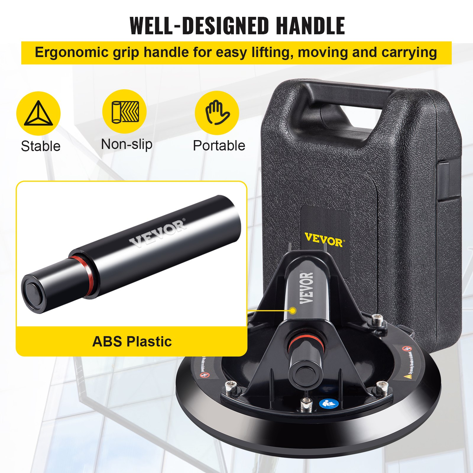 (FINAL PRICES ARE LOWER ON OUR SITE!) VEVOR Glass Suction Cup, 8'' Vacuum Suction Cup, 220lbs Load Capacity Vacuum Glass Lifter with Plastic Handle, Heavy-Duty Hand-Held Glass Lifter For Granite & Glass Lifting?With a free case?