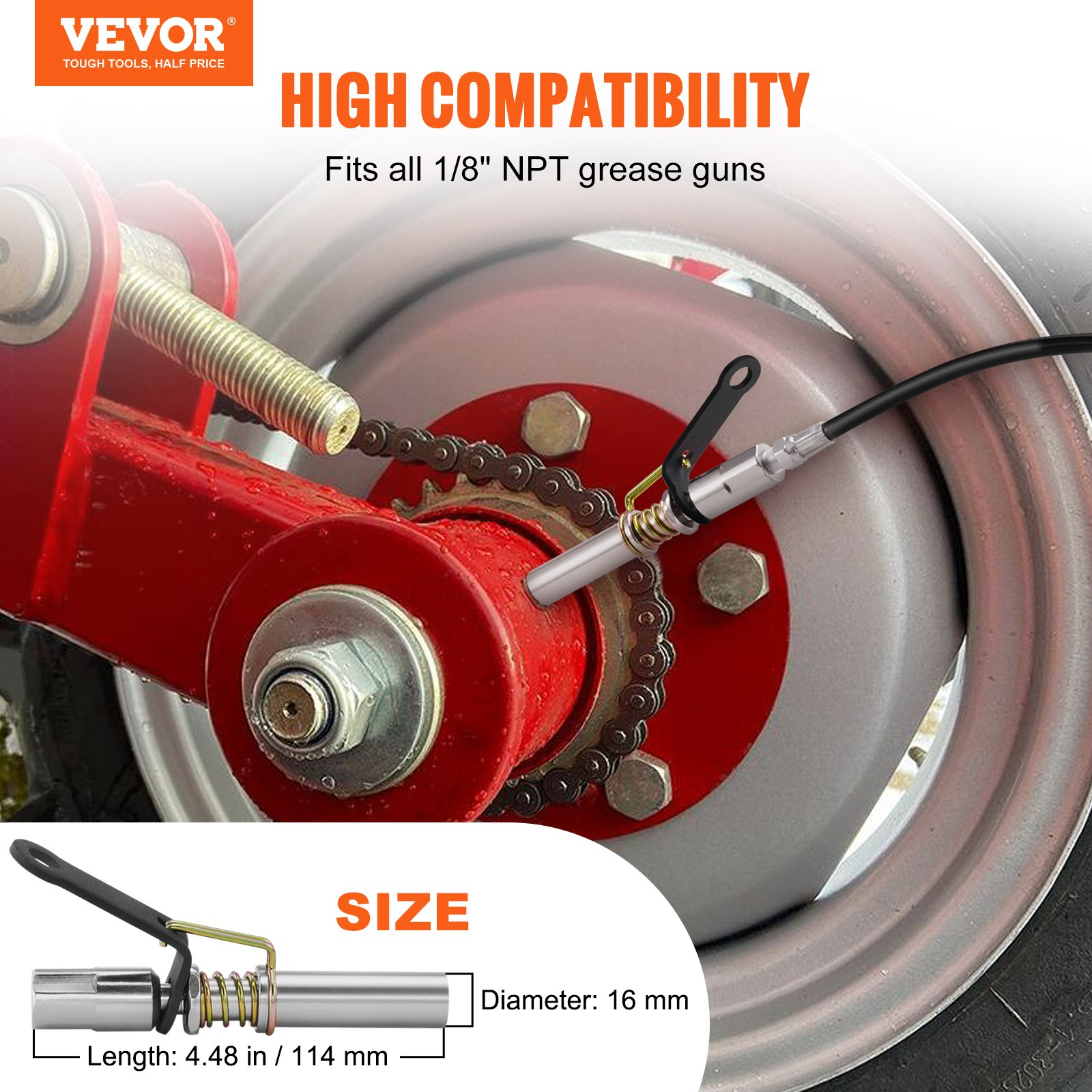 VEVOR Grease Gun Coupler 2 PCS, 10000 PSI High Pressure, 6-Jaw Locking, Quick Release Grease Gun Tip with Hose/Zerk Fittings Cleaner, Compatible with All Grease Guns 1/8" NPT Fittings for Automobiles