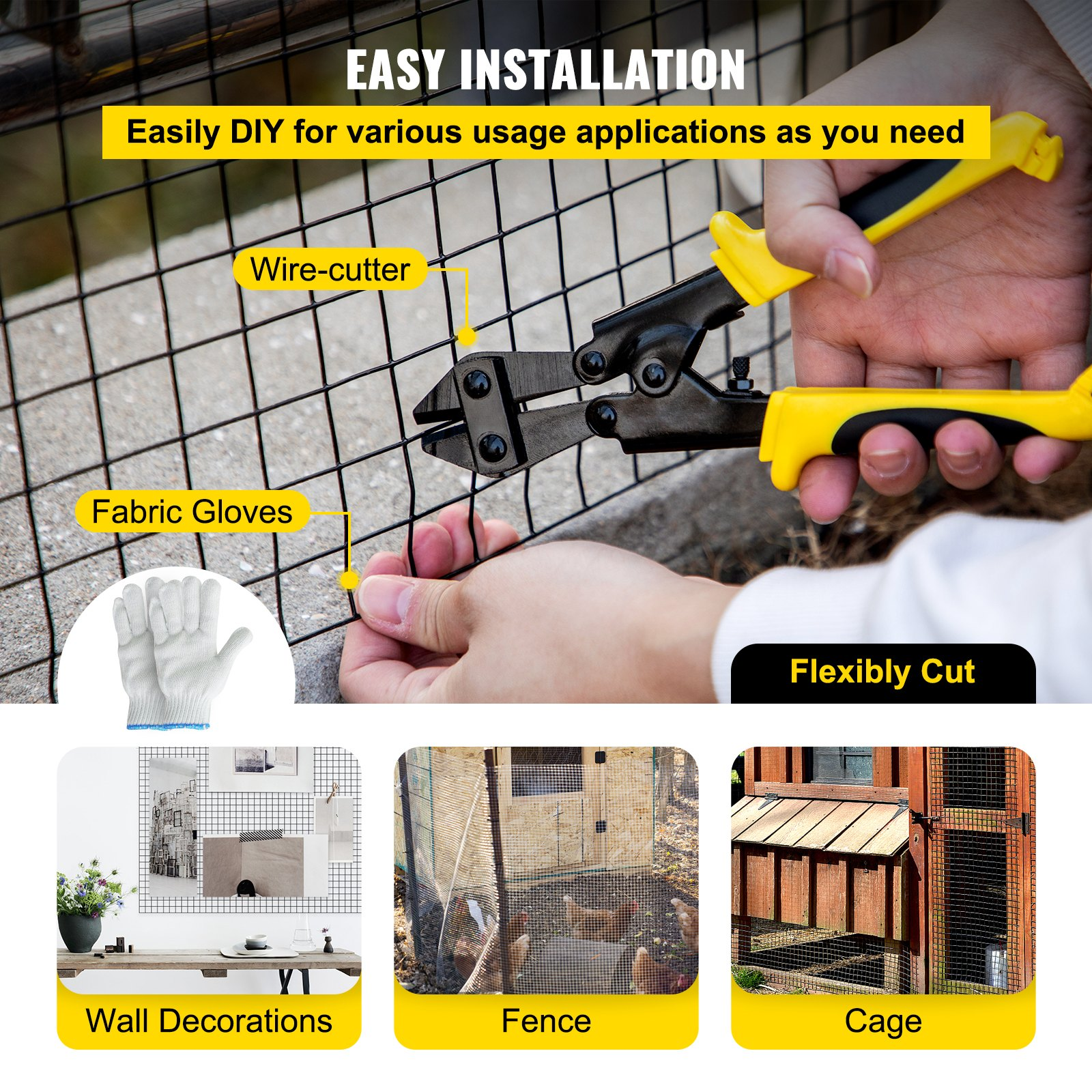 PRODUCT DESCRIPTION VEVOR Hardware Cloth, 24" x 100' & 1"x1" Mesh Size, Galvanized Steel Vinyl Coated 16 Gauge Chicken Wire Fencing w/A Cutting Plier & A Pair of Fabric Gloves, for Garden Fencing & Pet Enclosures, Black