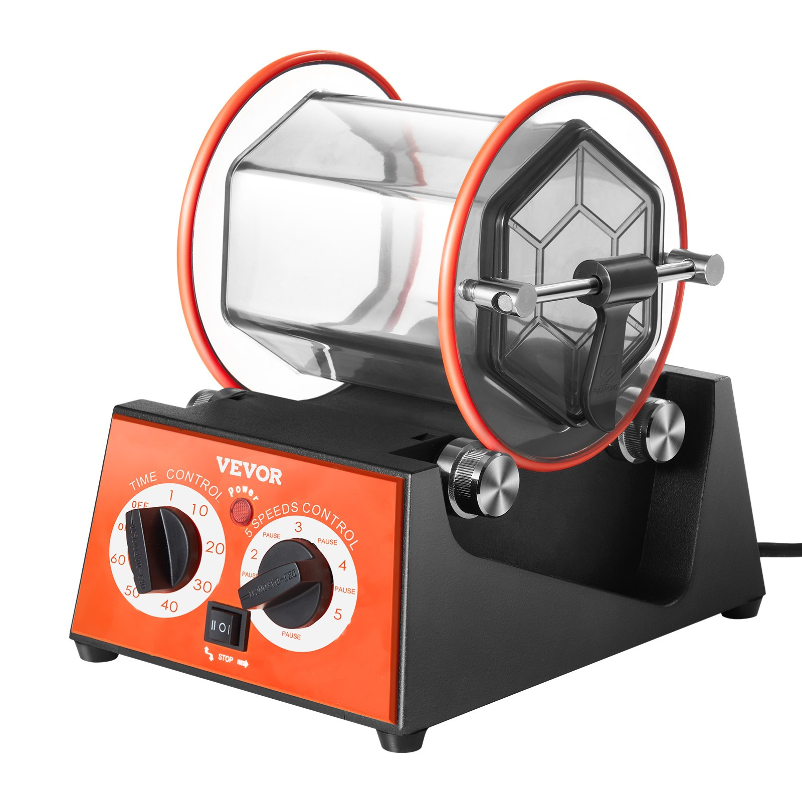 VEVOR Jewelry Polisher Tumbler, 11lbs/5kg Capacity Mini Rotary Tumbler Machine with 0-60 Minutes Timer, 5 Speeds Jewelry Rotary Finisher for Surface Polishing Grinding Buffing Gemstones Jewels Coins