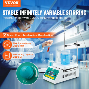 (FINAL PRICES ARE LOWER ON OUR SITE!) VEVOR Magnetic Stirrer Hot Plate, Max 572°F/300°C, 0-2000 RPM Hot Plate with Magnetic Stirrer, 2000mL Hot Plate Stirrer with LED Screen, Support Stand and Stir Bars Included, 500W Heating Power