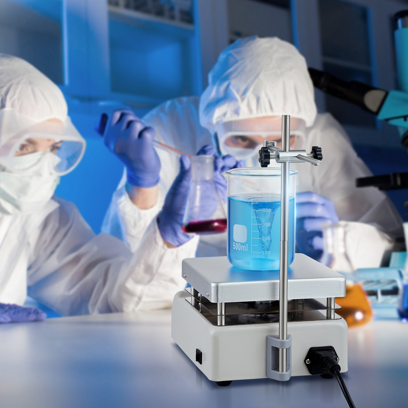 PRODUCT DESCRIPTION VEVOR Magnetic Stirrer Hot Plate, Max 716°F/380°C, 0-2000 RPM Hot Plate with Magnetic Stirrer, 3000mL Hot Plate Stirrer, Support Stand and Stir Bars Included, 500W Heating Power