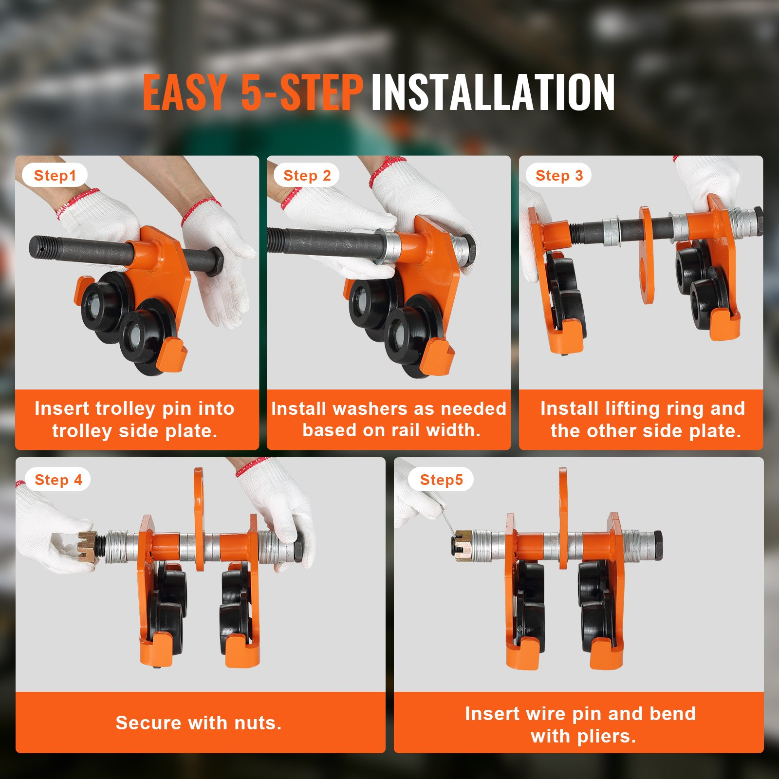 (FINAL PRICES ARE LOWER ON OUR SITE!) VEVOR Manual Trolley, 6600 lbs/3 Ton Load Capacity, Push Beam Trolley with Dual Wheels, Adjustable for I-Beam Flange Width 2.5" to 8", Heavy Duty Alloy Steel Garage Hoist for Straight Curved I Beam