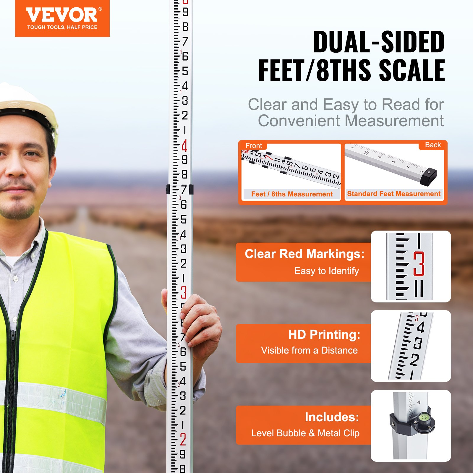 VEVOR Measuring Rod 14-Feet/8ths 4 Sections Telescopic Grade Rod 1/8in w/ Bag