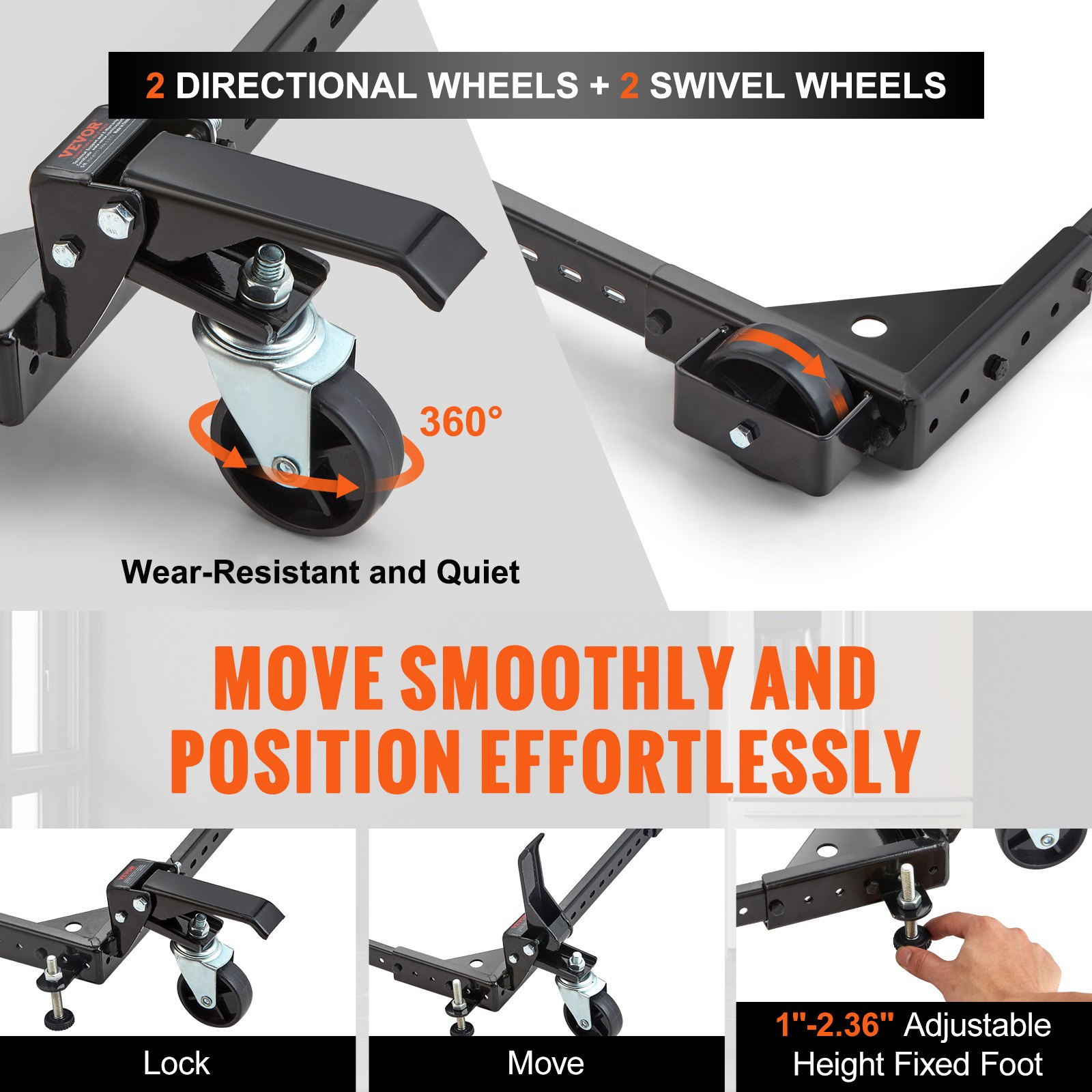 PRODUCT DESCRIPTION VEVOR Mobile Base, 700 lbs Weight Capacity, Adjustable from 15" x 15" to 36" x 36", Heavy Duty Universal Mobile Base Stand with Swivel Wheels, for Woodworking Equipment, Bandsaw, Power Tools, Machines