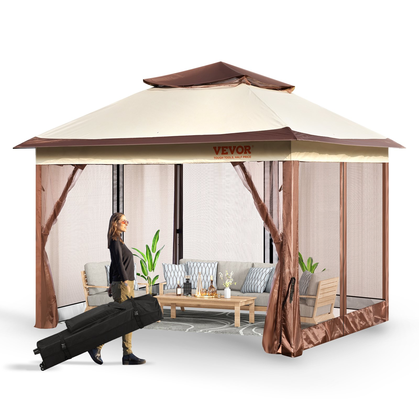 (FINAL PRICES ARE LOWER ON OUR SITE!) VEVOR Patio Gazebo, 11 x 11 FT Pop up Gazebo for 8-10 Person, with Mosquito Netting, Metal Frame, and PU Coated 250D Oxford Cloth, Outdoor Canopy Shelter for Patio, Backyard, Lawn, Garden, Deck