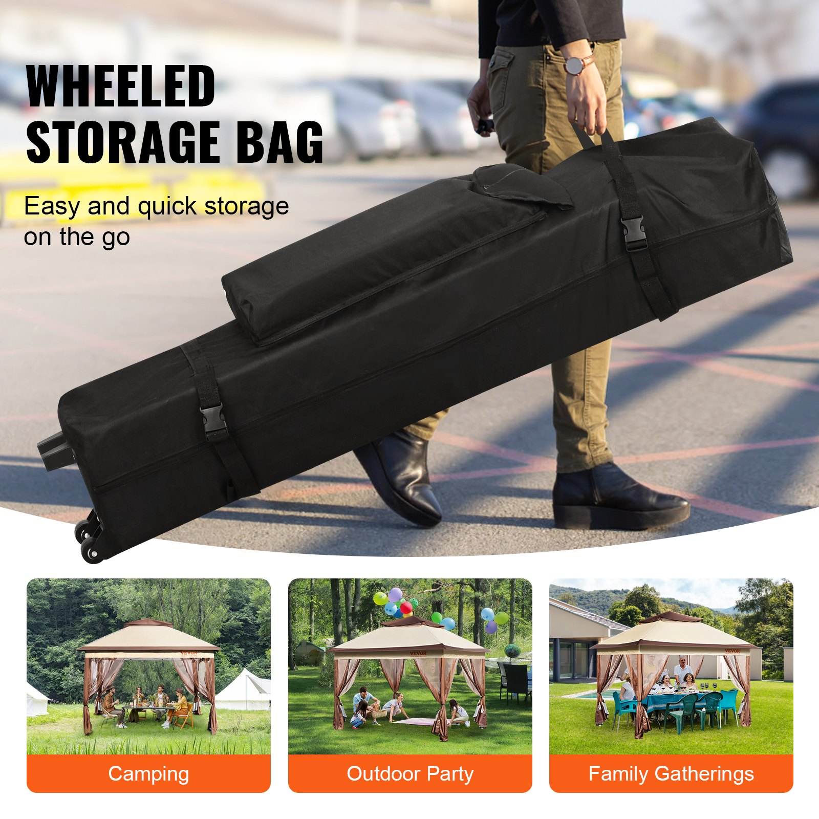 PRODUCT DESCRIPTION VEVOR Patio Gazebo, 11 x 11 FT Pop up Gazebo for 8-10 Person, with Mosquito Netting, Metal Frame, and PU Coated 250D Oxford Cloth, Outdoor Canopy Shelter for Patio, Backyard, Lawn, Garden, Deck