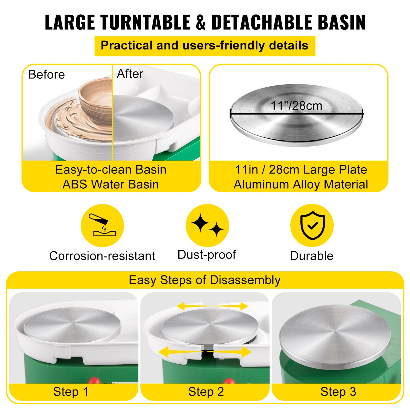 (FINAL PRICES ARE LOWER ON OUR SITE!) VEVOR Pottery Wheel 28cm Pottery Forming Machine 350W Electric Pottery Wheel with Adjustable Feet Lever Pedal DIY Clay Tool with Tray for Ceramic Work Clay Art DIY Clay Green, 18 Piece
