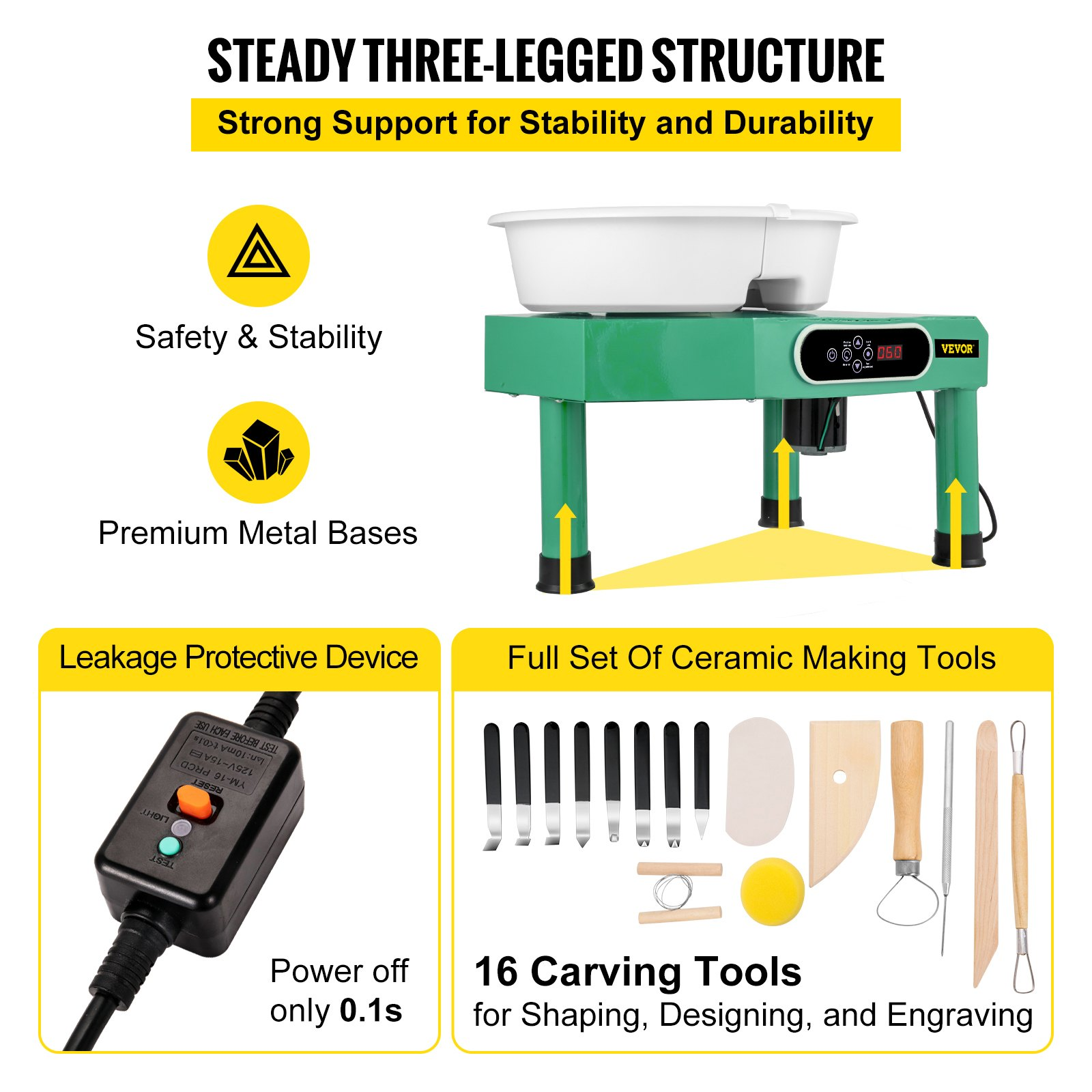 PRODUCT DESCRIPTION VEVOR Pottery Wheel 9.8" LCD Touch Screen Pottery Wheel Forming Machine,350W Electric DIY Clay Sculpting Tools with Foot Pedal & Detachable ABS Basin for Adults and Beginners Art Craft (Green)