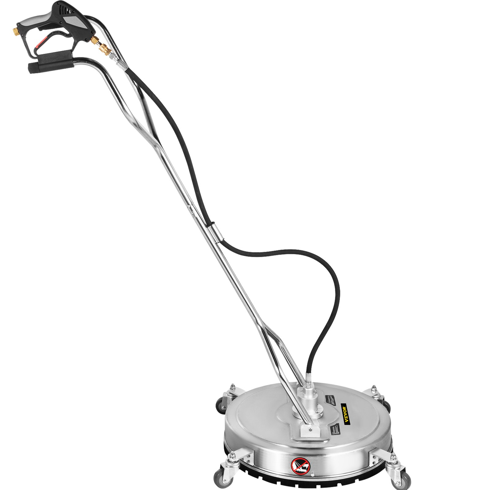 PRODUCT DESCRIPTION VEVOR Pressure Washer Surface Cleaner, 23'', Max. 4000 PSI Pressure by 3 Nozzles for Cleaning Driveways, Sidewalks, Stainless Steel Frame w/Rotating Handle, Wheels, Fit for 3/8'' Quick Connector