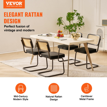 PRODUCT DESCRIPTION VEVOR Rattan Dining Chairs Set of 4, Mid Century Modern Dining Chair, Upholstered Velvet Accent Chair with Rattan Back, Retro Dining Room Kitchen Chair for Living Room, Bedroom, Office (18.1 Inch)