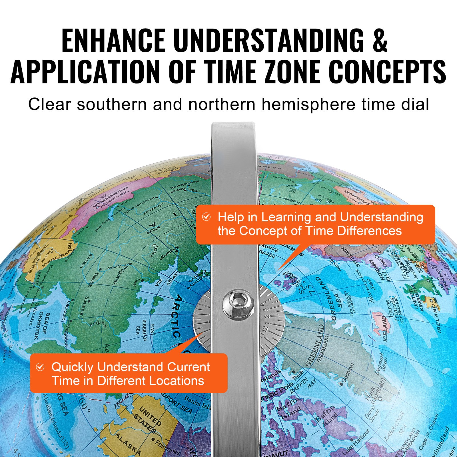 (FINAL PRICES ARE LOWER ON OUR SITE!) VEVOR Rotating World Globe with Stand, 13 in/330.2 mm, Educational Geographic Globe with Precise Time Zone ABS Material, 720° Spinning Globe for Kids Children Learning Classroom Geography Education