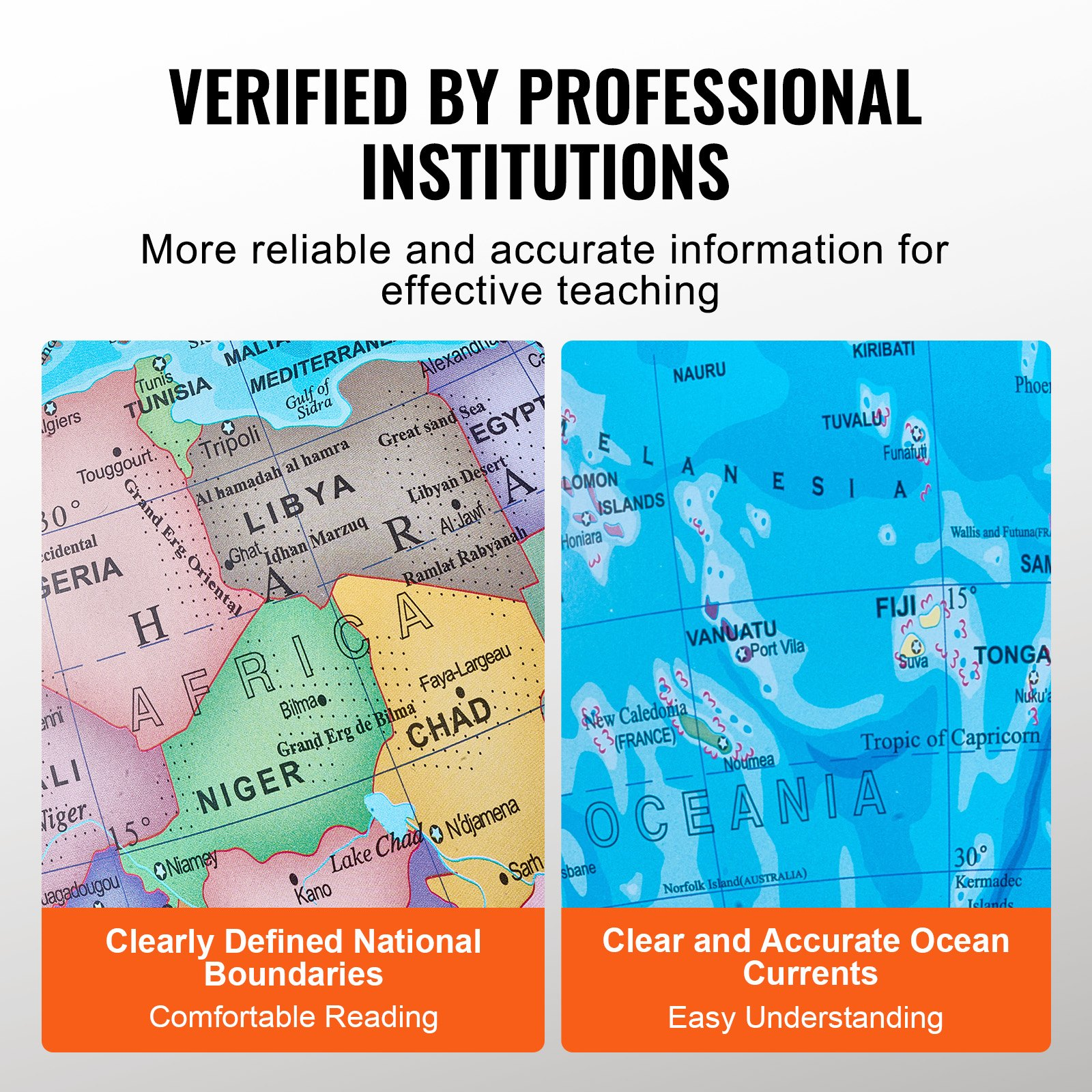 VEVOR Rotating World Globe with Stand, 13 in/330.2 mm, Educational Geographic Globe with Precise Time Zone ABS Material, 720° Spinning Globe for Kids Children Learning Classroom Geography Education