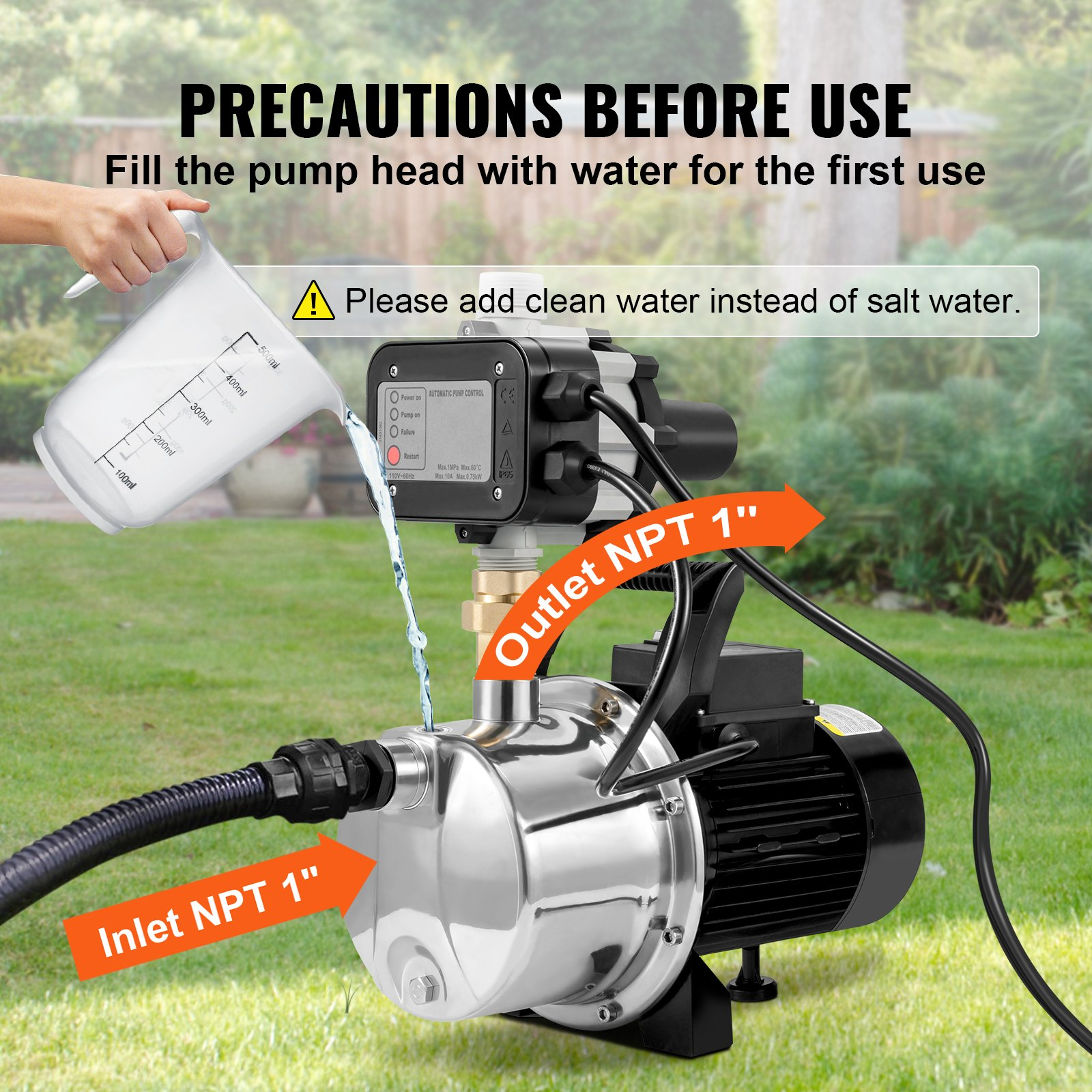 PRODUCT DESCRIPTION VEVOR Shallow Well Pump Portable Jet Pump w/ Auto Controller 1HP 1200GPH 164ft