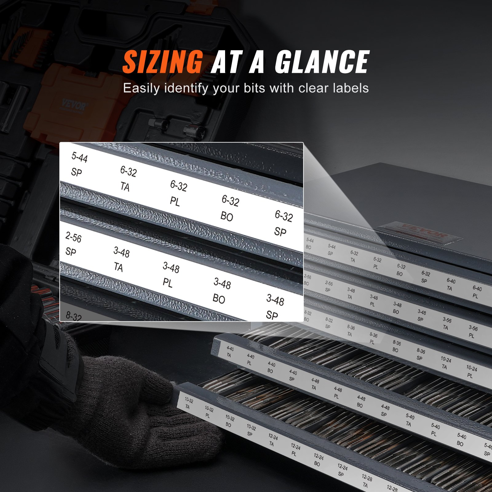VEVOR Tap Dispenser Cabinet, Five-Drawer Tap Organizer Cabinet for #2-56-#12-28 Steel Tap Dispenser Organizer Cabinet with Labels, 60-Compartment Stackable Tap Cabinet for Tap Storage